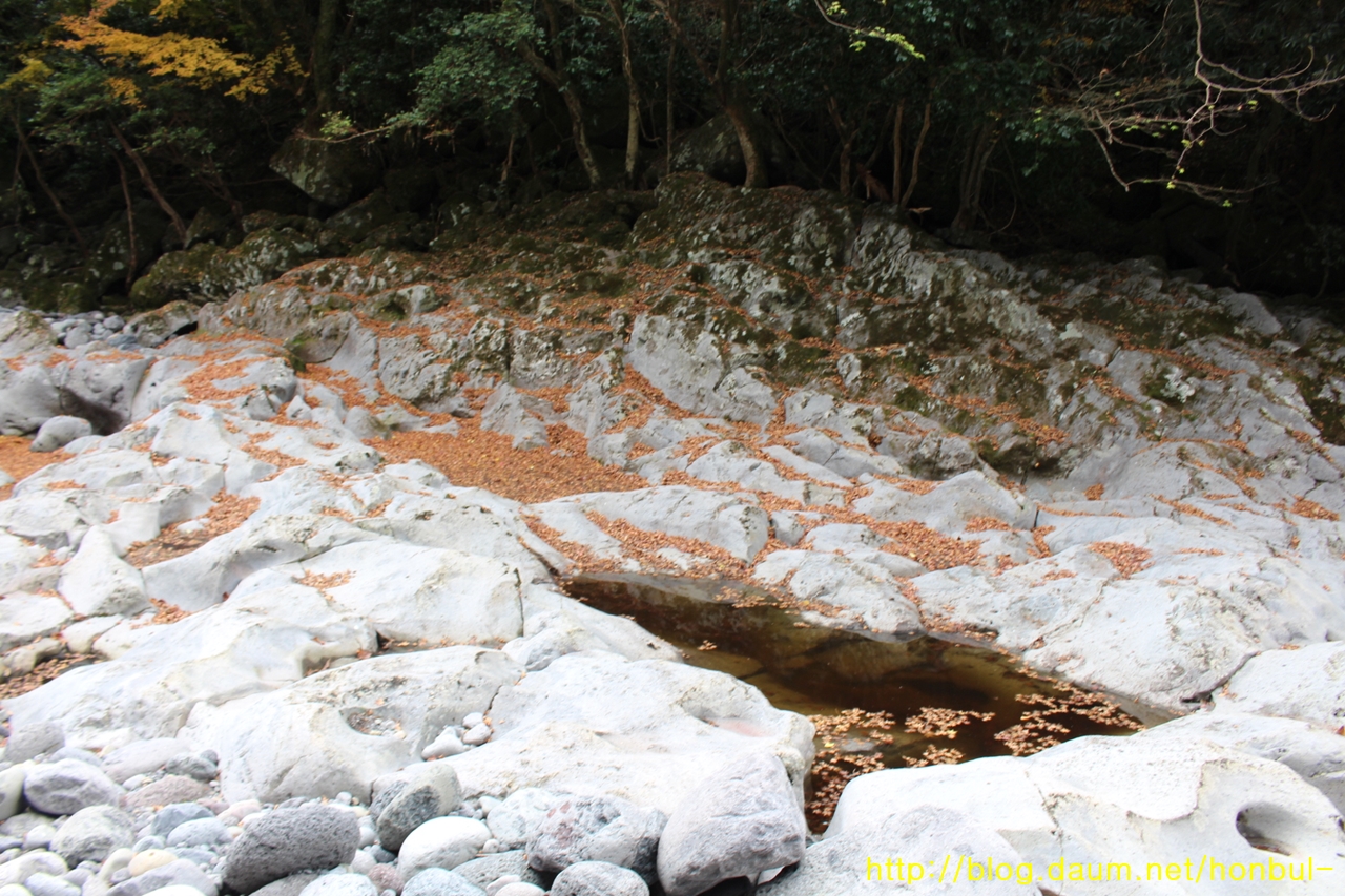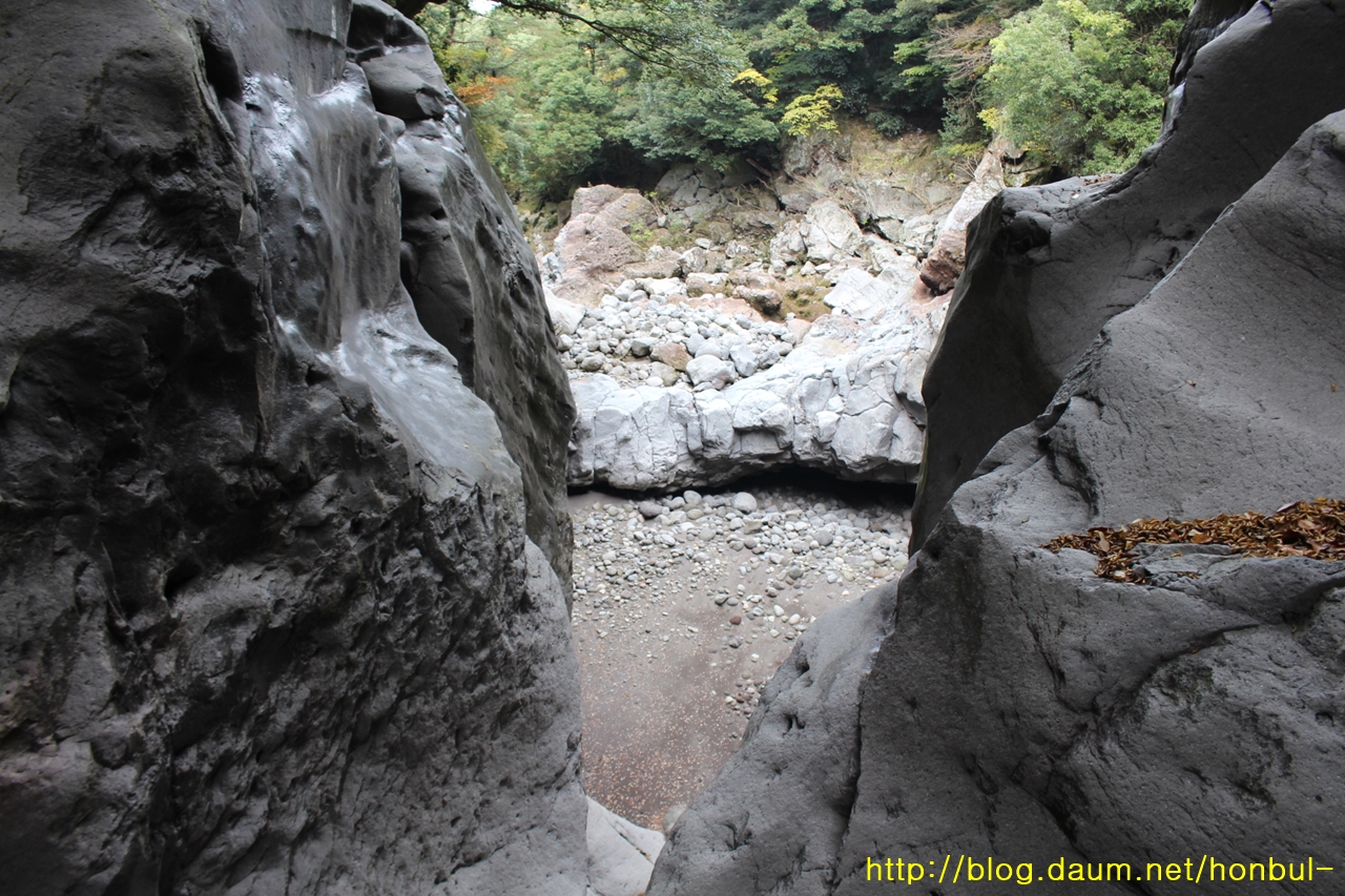 폭포의 위용에 매료돼 생각 없이 진행하다간 물이 있든 없든 소에 빠지면 혼자 힘으로 탈출이 불가능하다.