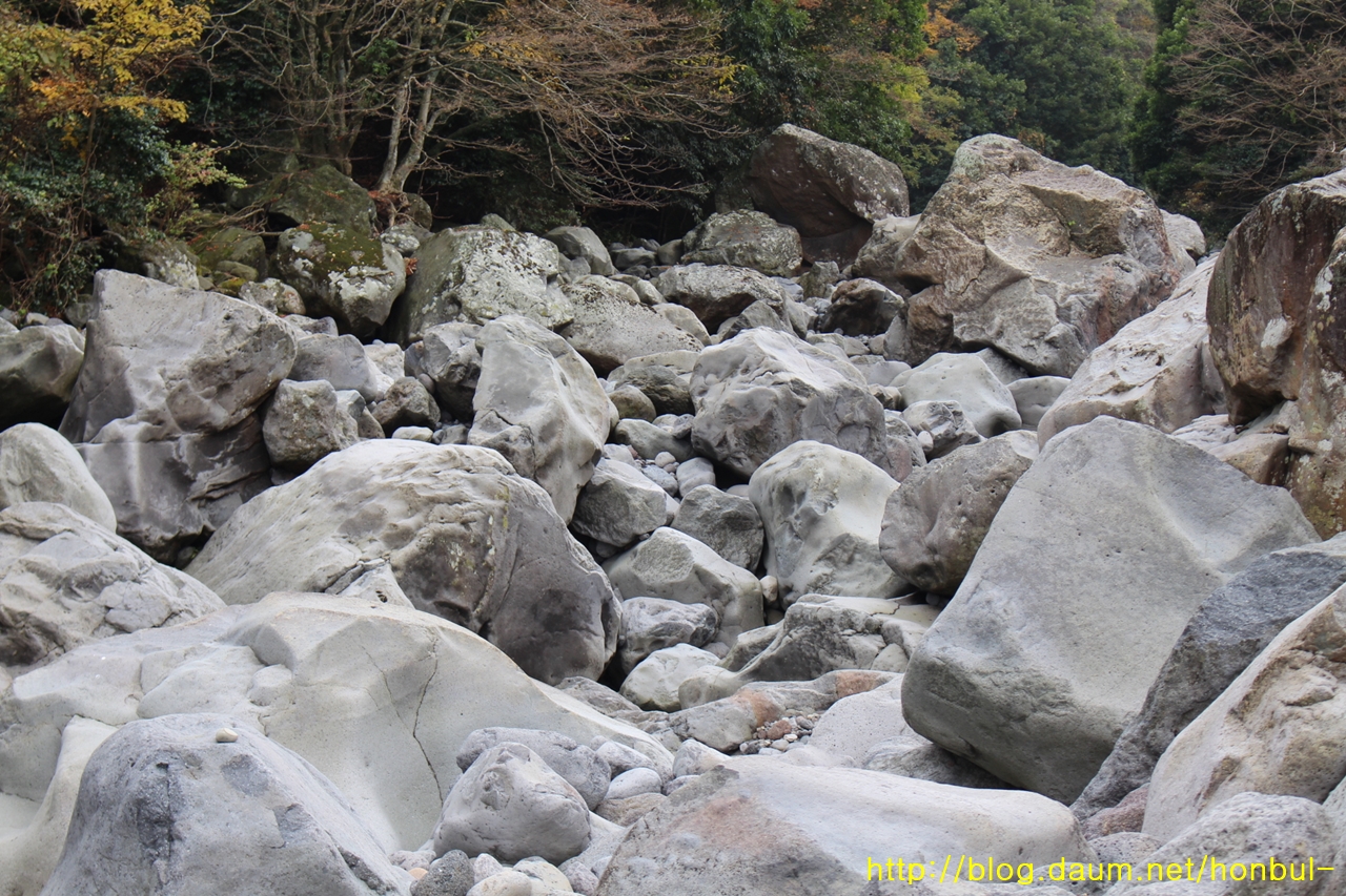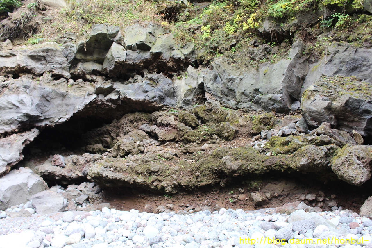 그 밑으로 흘러내린 자갈과 돌이 높게 쌓였다.