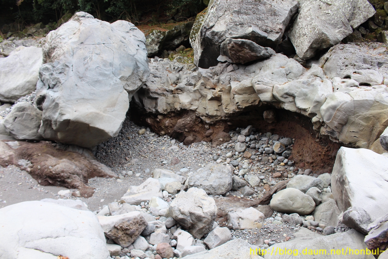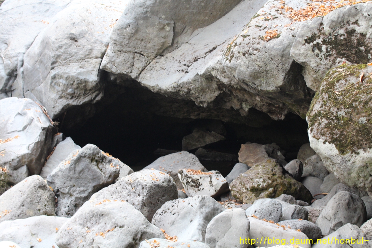 그리고 짧은 협곡을 지날 때 굴이 보인다.