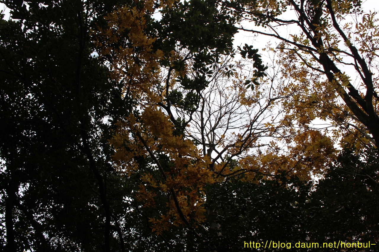 대부분 상록수가 자라는 이곳에 참나무가 있었나 보다.