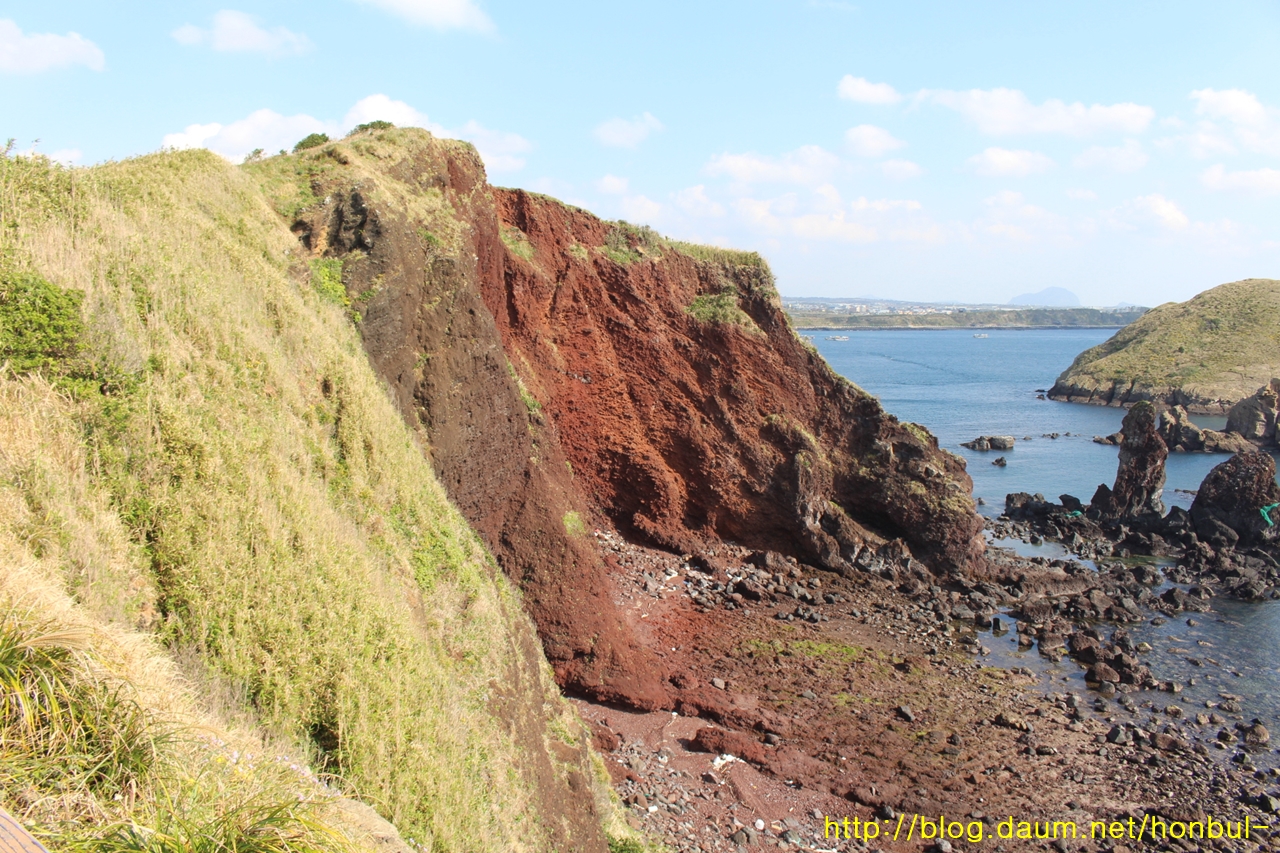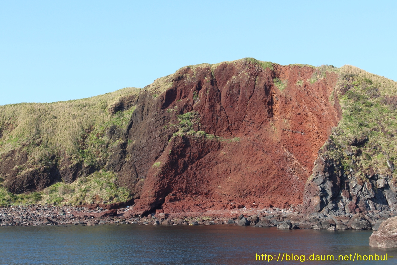 현무암이 산화되어 붉은색으로 변한 것이다.