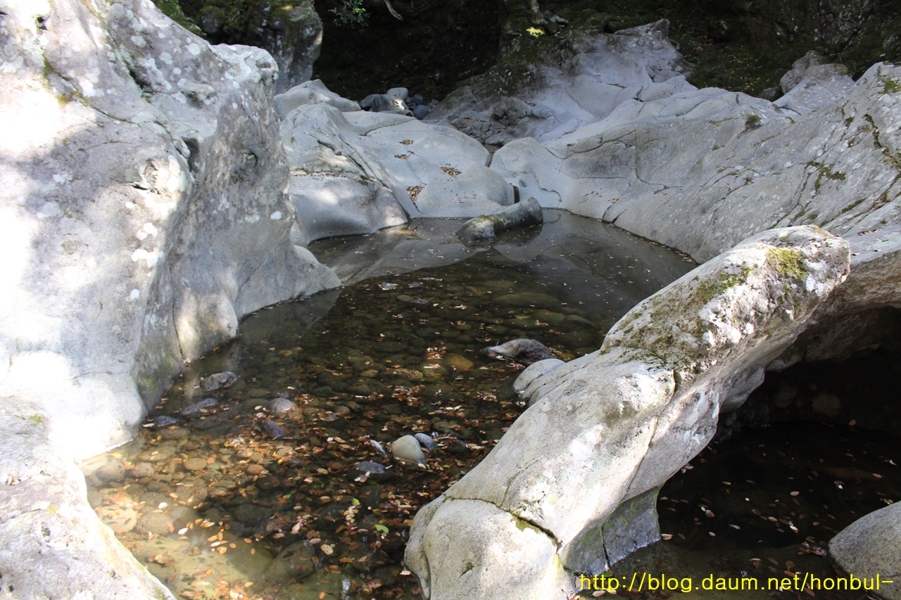 비 온 뒤 물이 그득한 소가 제법 큰 곳인데, 건천이라 바닥에만 깔렸다.