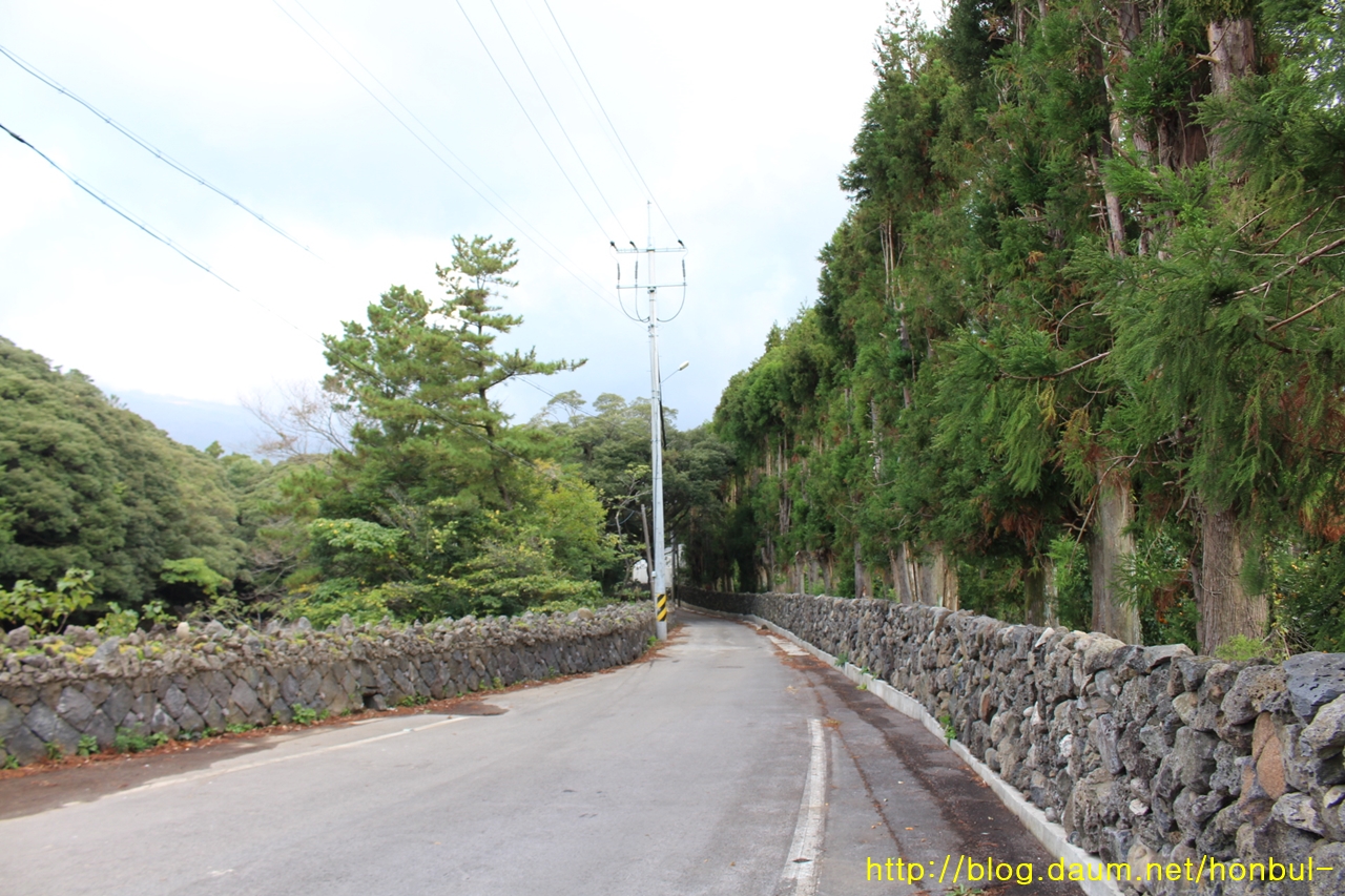 학림천을 지나 효돈천을 들어가야 하는 데, 담장이 높아 들어갈 수 없으므로 마을길을 따라 들어간다.