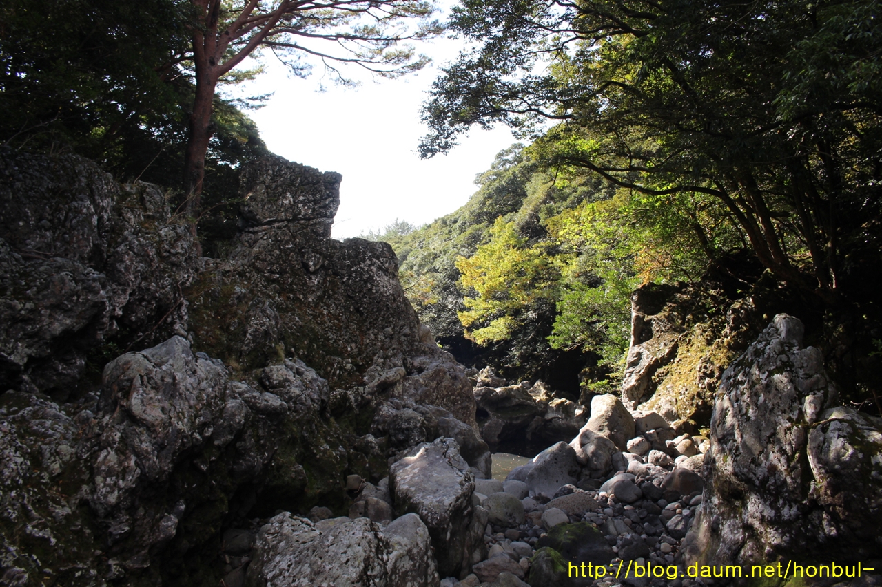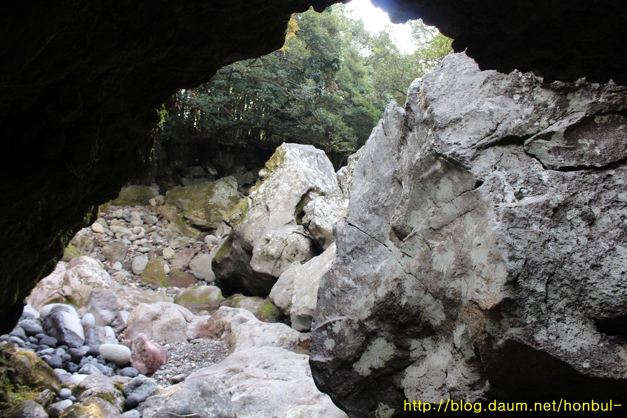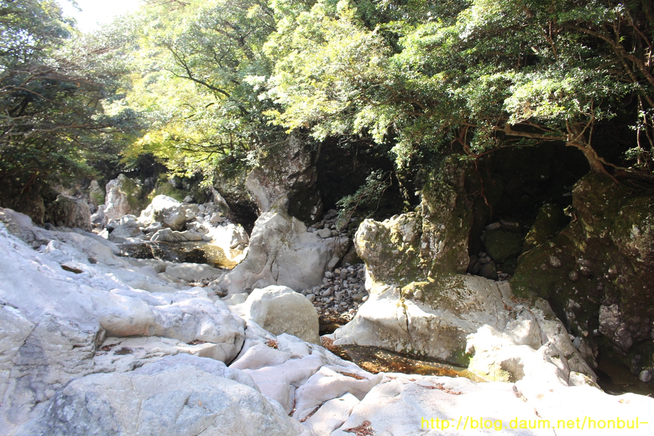 계곡 양쪽 나무가 얼마나 큰지 상단은 서로 연결되어 나무 터널을 지나는 셈이다.