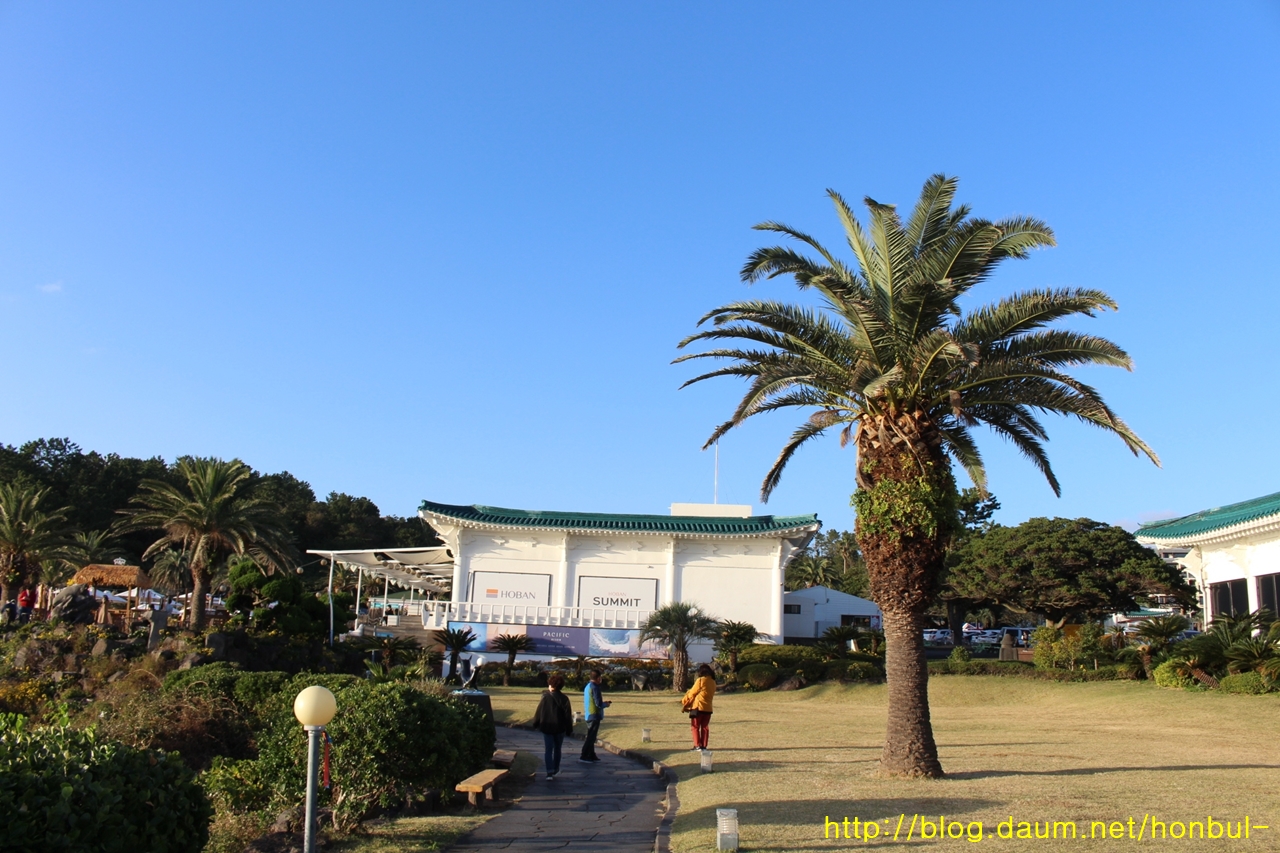 언덕에 파스텔톤 건물은 부영호텔&리조트이고, 지붕이 흰 건물은 제주 국제컨벤션센터이다.
