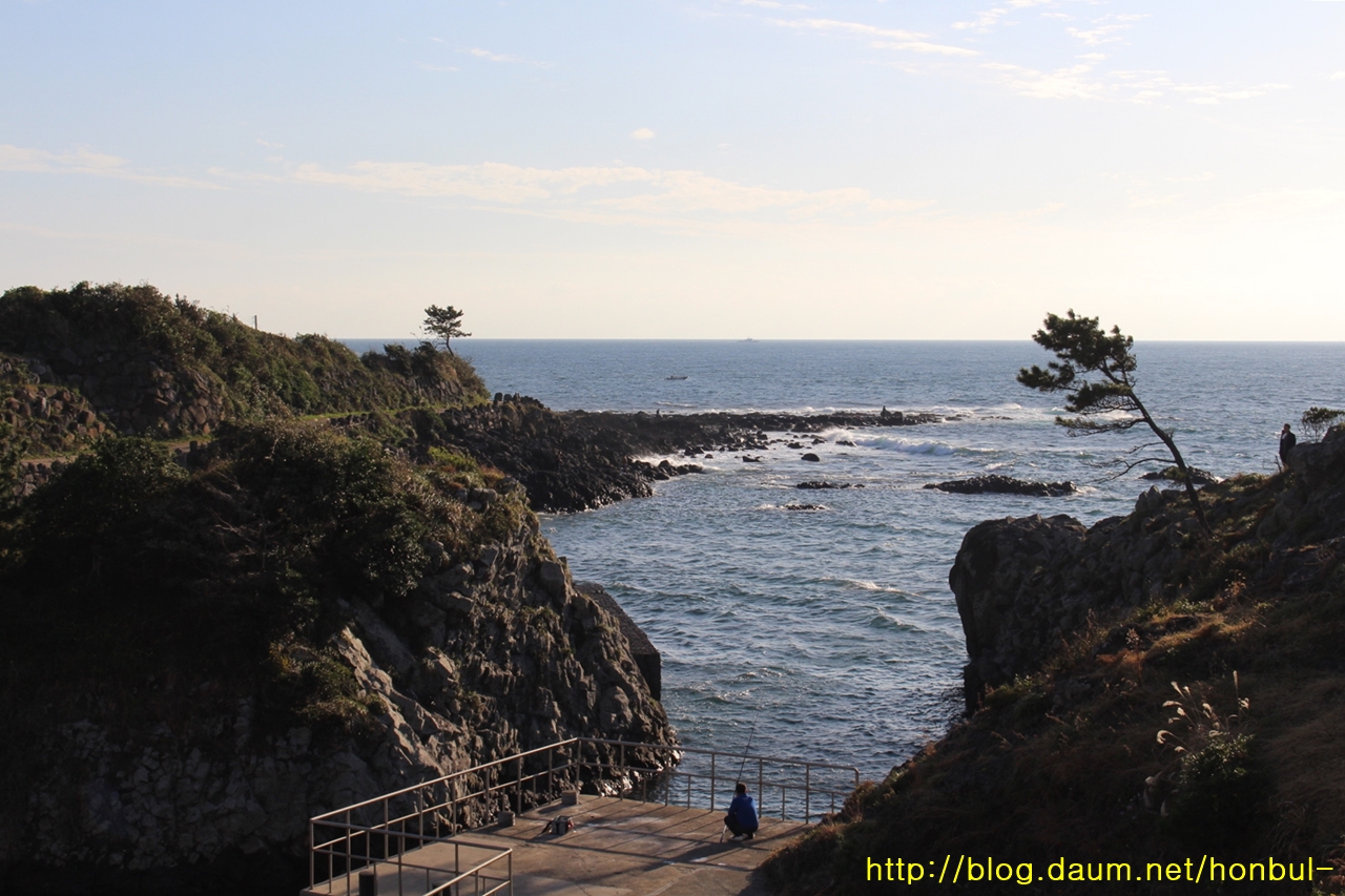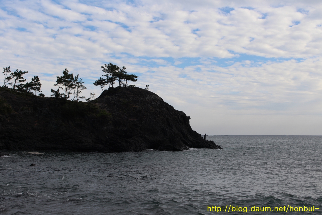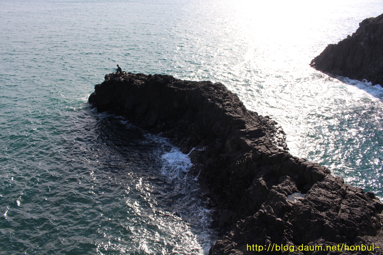 좀 전에 사두암에서 서성거리던 낚시꾼이 저 바위로 자리를 옮겨 낚싯대를 풀었다.
