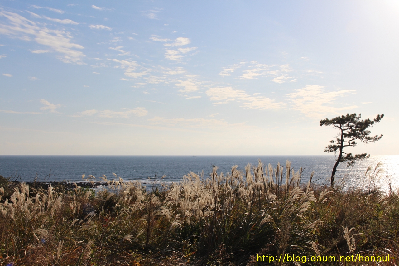 억새와 소나무, 그리고 바다 위 하얀 구름...