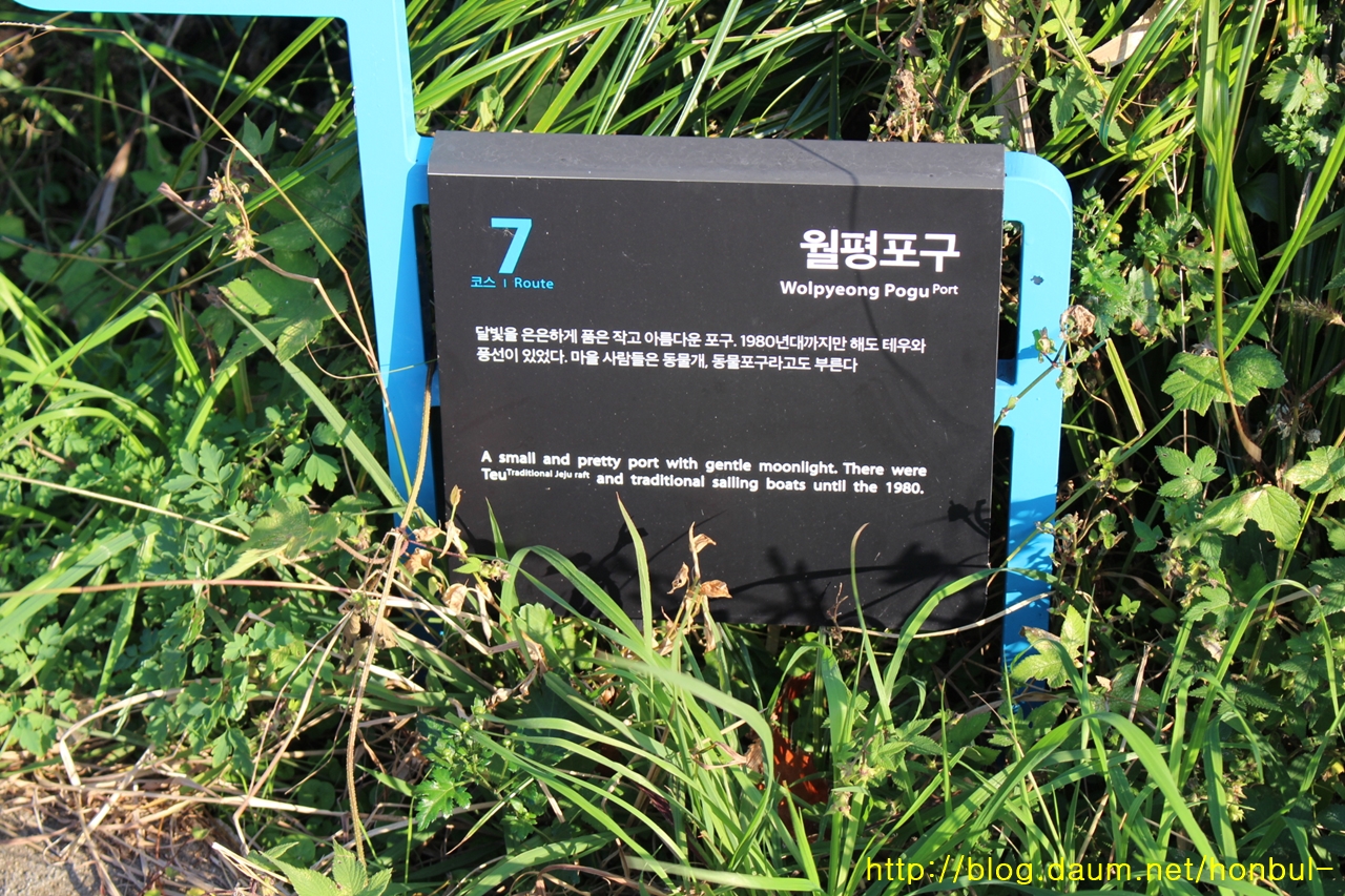 월평포구 또한 오목하게 들어온 작은 연못 같은 포구로 올레꾼들이 사랑하는 장소 중에 하나이다. (비짓 제주)