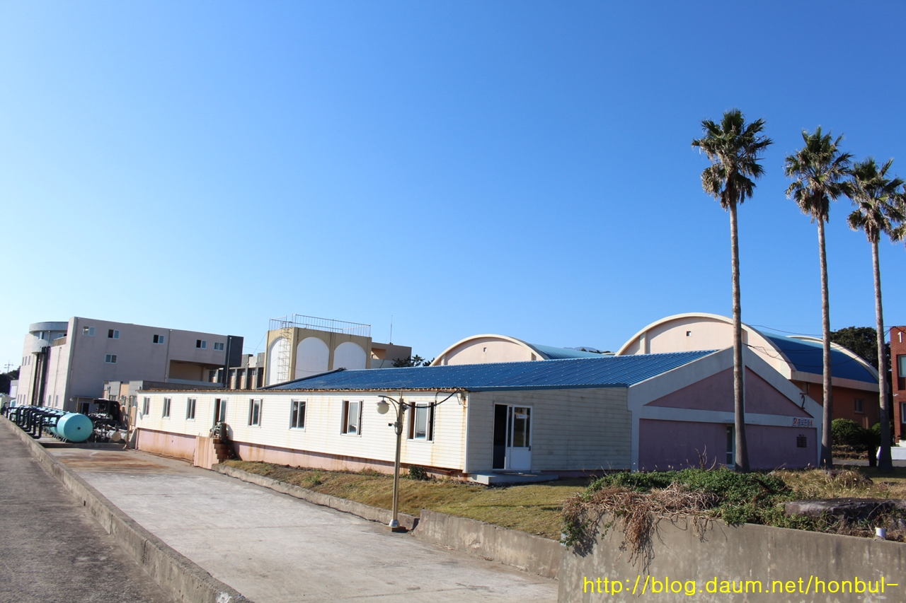 이곳 주변에 수산물 가공 공장이 많아 바다로 폐수를 흘려보내는 호수가 보인다.