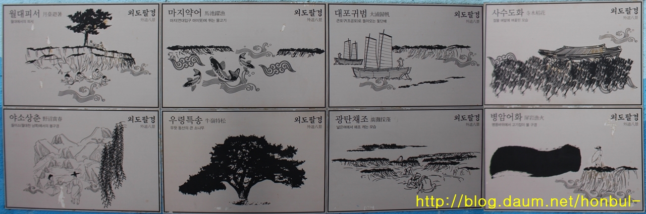 방파제 둑에 설치된 외도 팔경 안내도