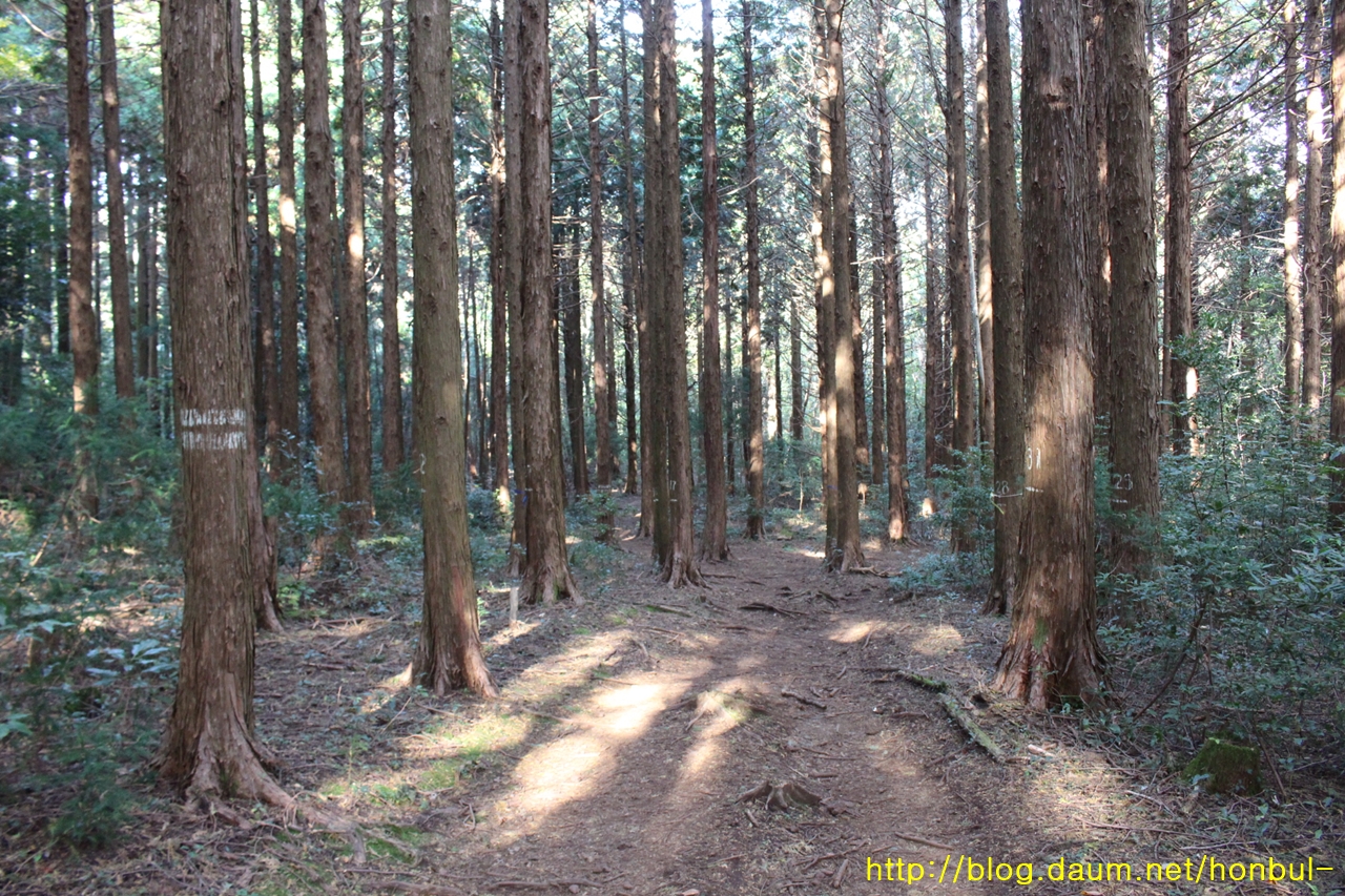 편백나무, 삼나무, 소나무, 잡목 등이 우거져 있는 숲으로