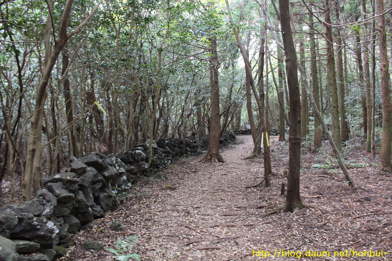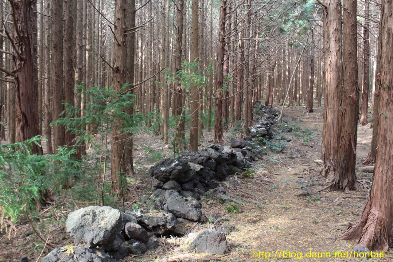 돌담을 따라 삼나무 숲이 울창하게 잘 자란다.