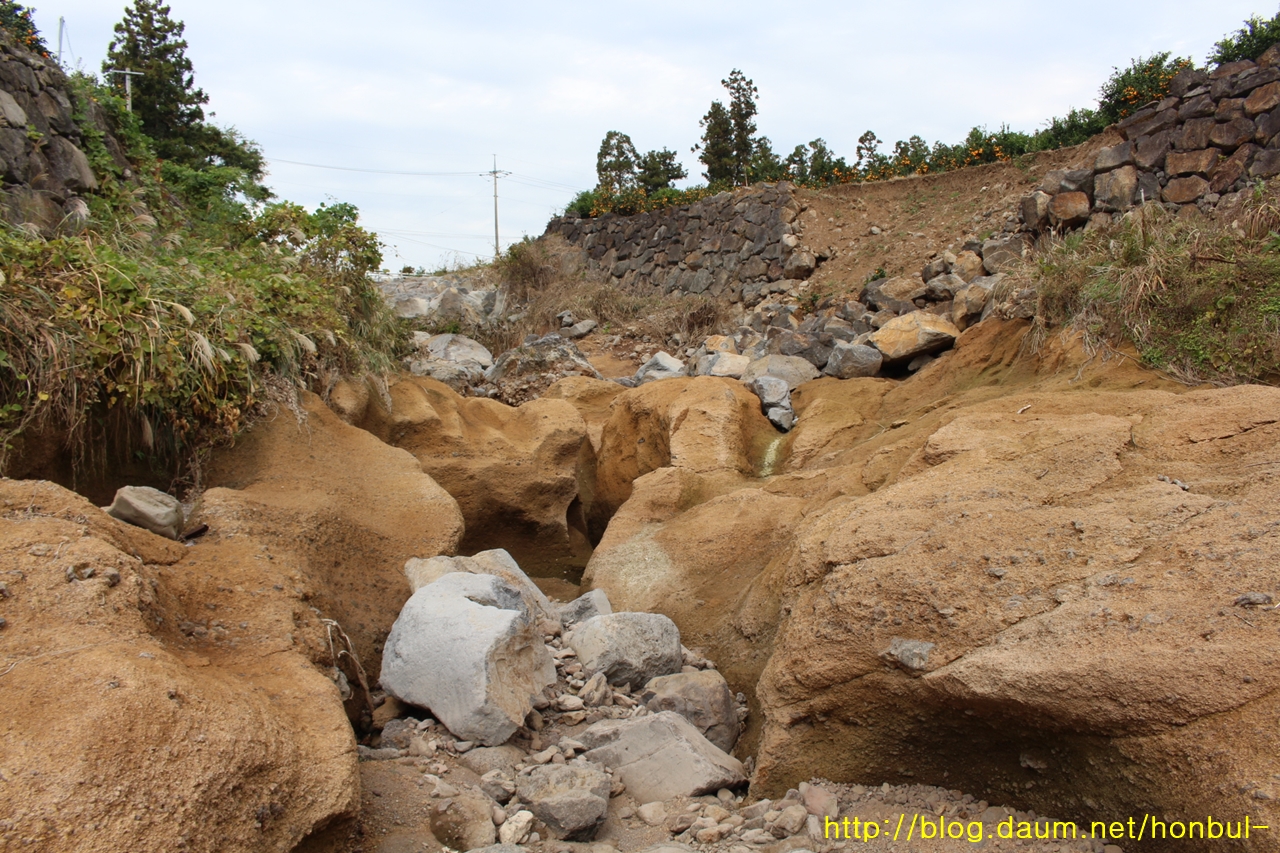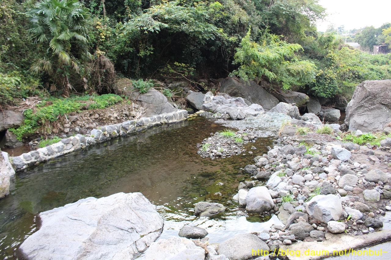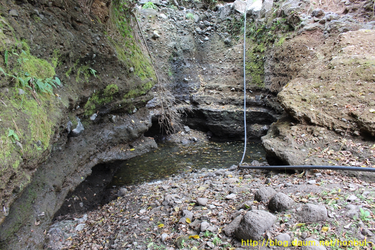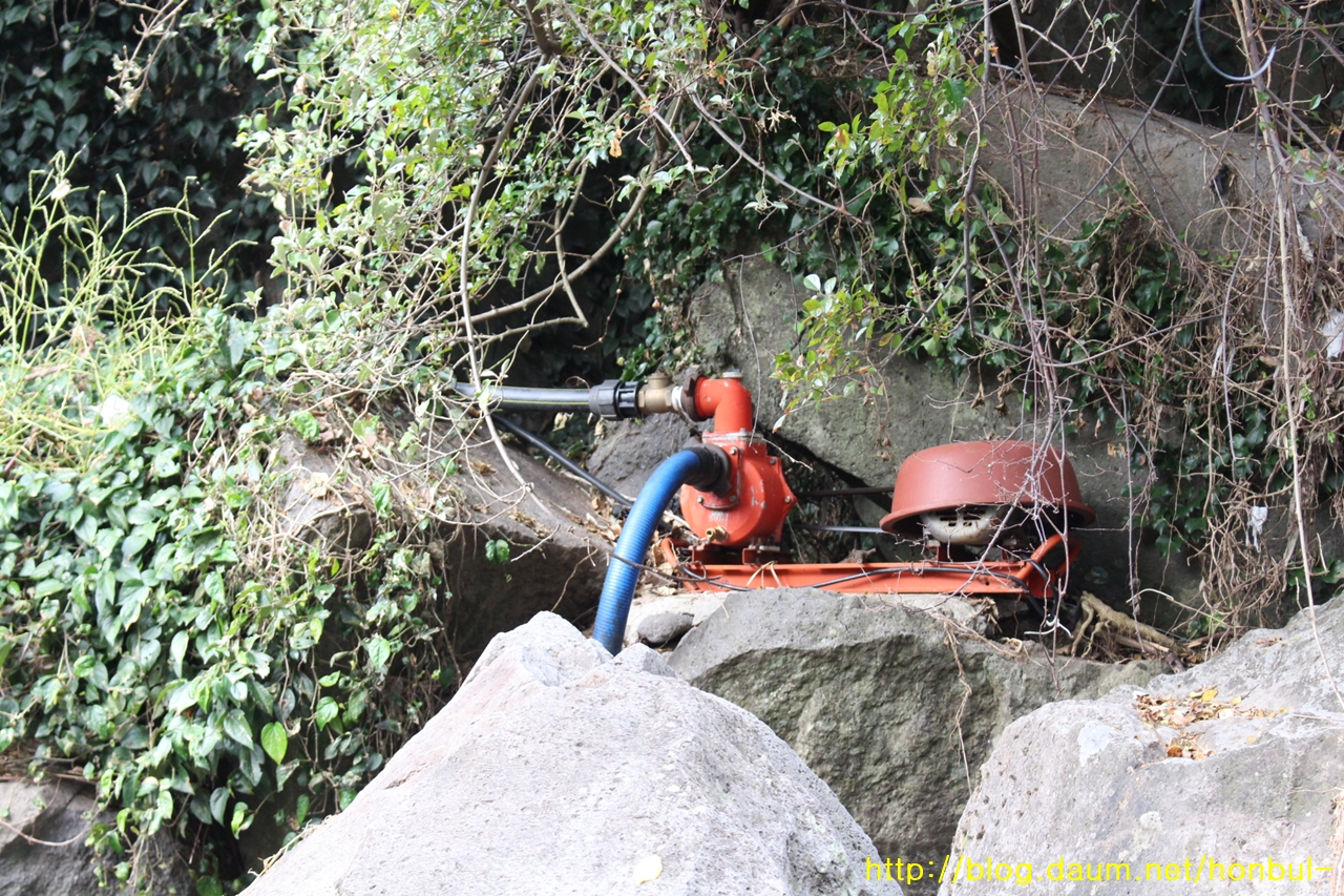 이곳은 늘 물이 풍부하므로 옆 귤 농가에서 물을 끌어올리는 양수기를 설치한 게 보인다.
