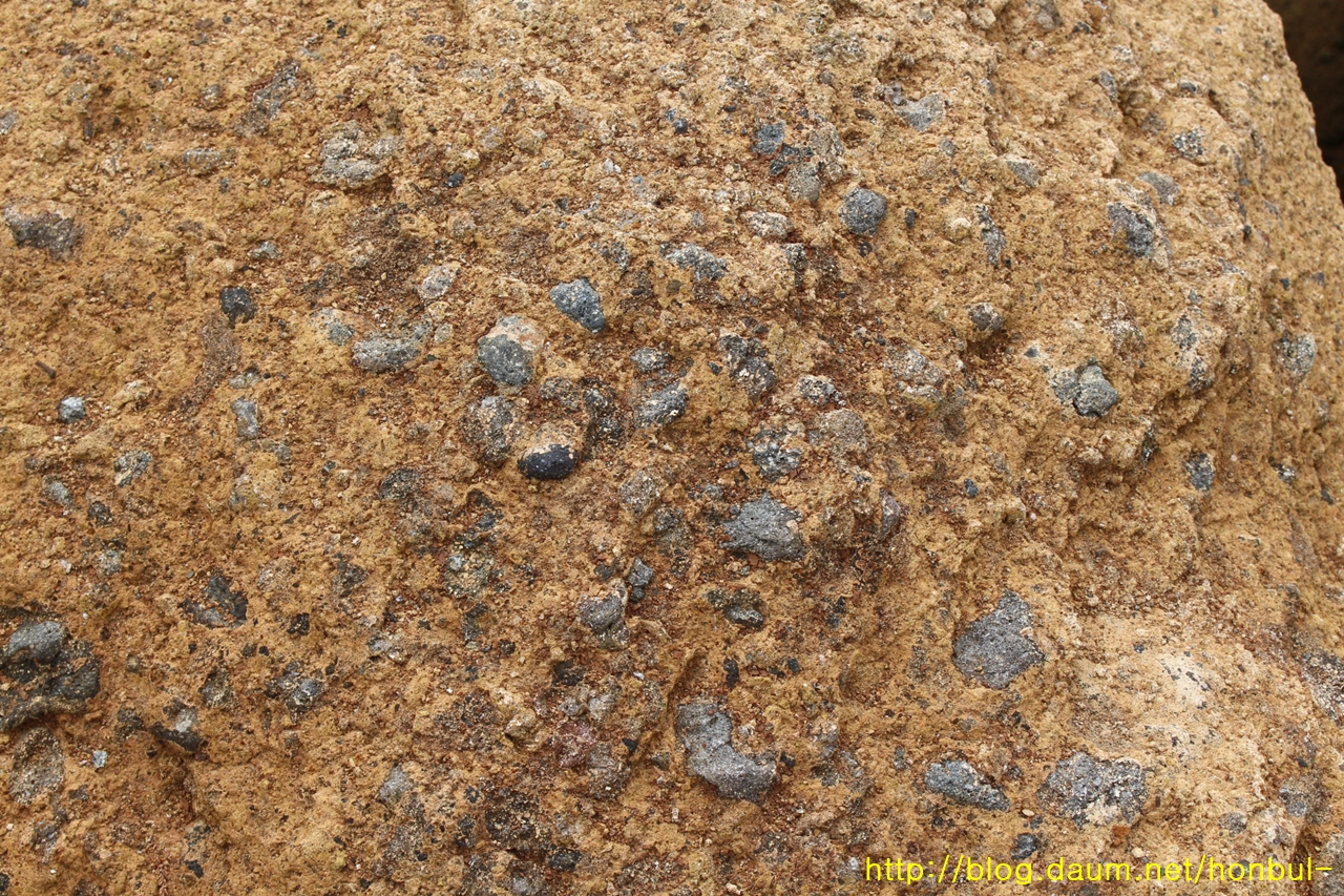 일부엔 이렇게 자갈이 박힌 역암 형태를 보이기도 한다.