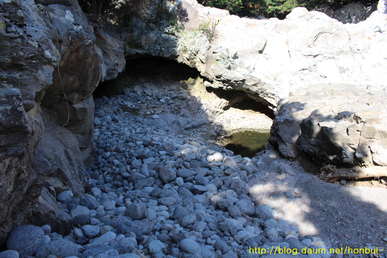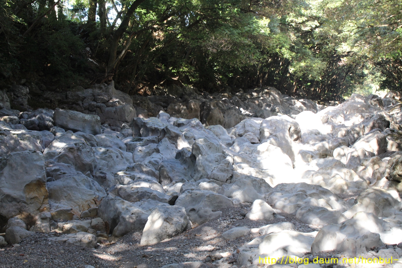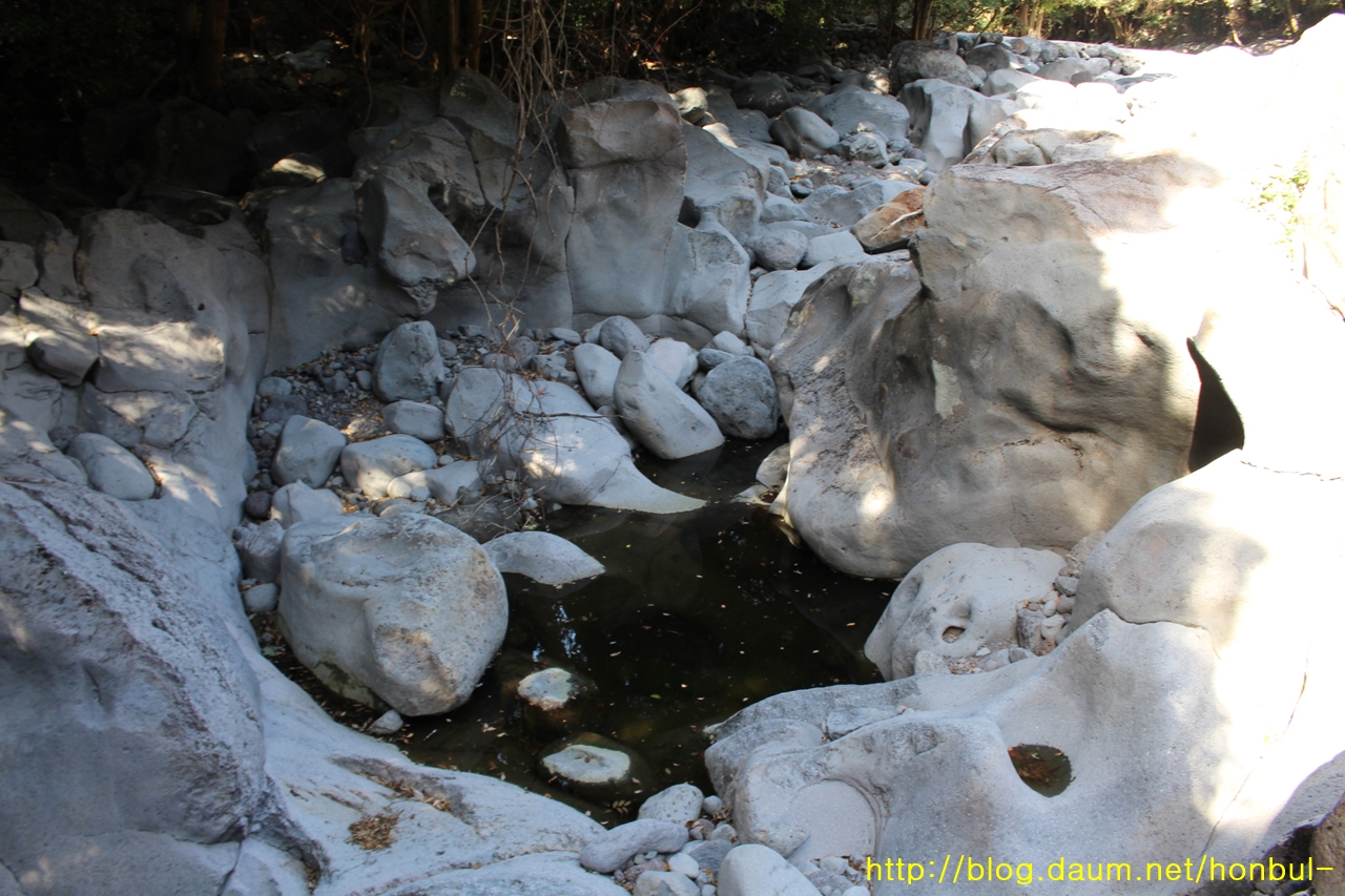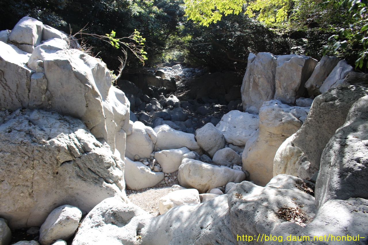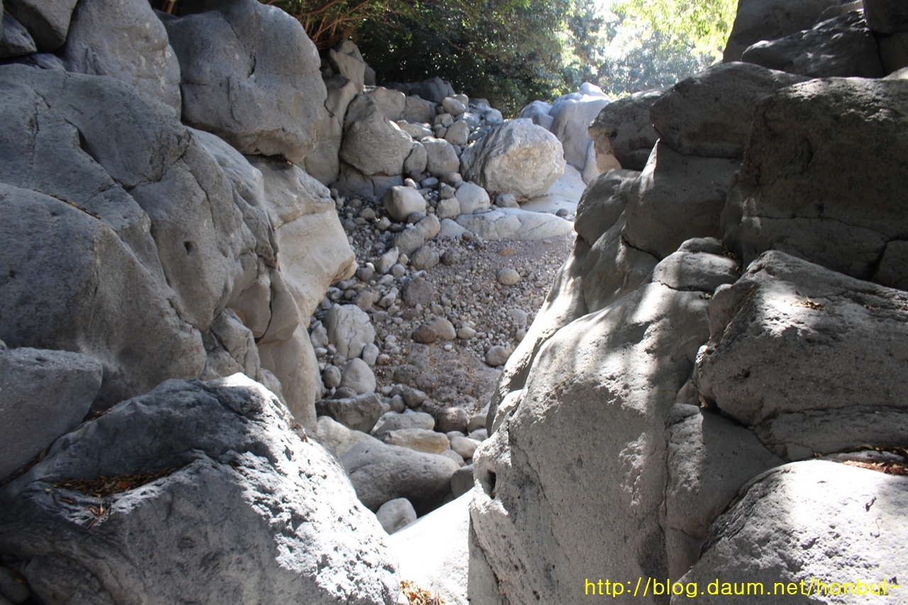 순식간에 계곡은 건천으로 변하고 바닥은 암반 계곡이다.