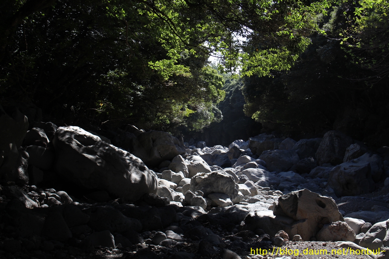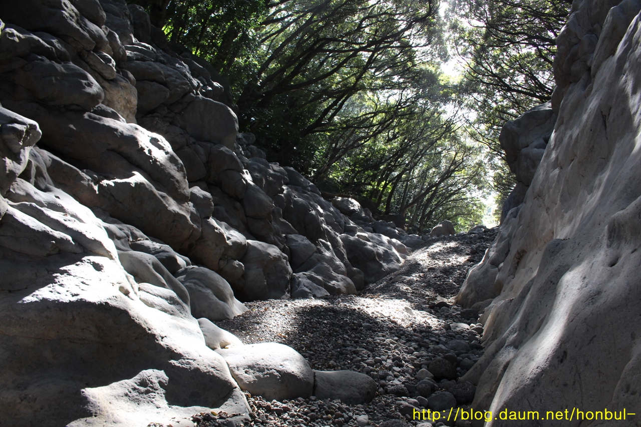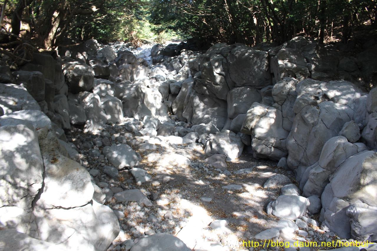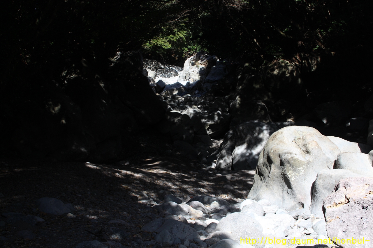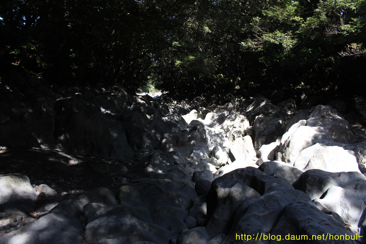 순식간에 계곡은 건천으로 변하고 바닥은 암반 계곡이다.