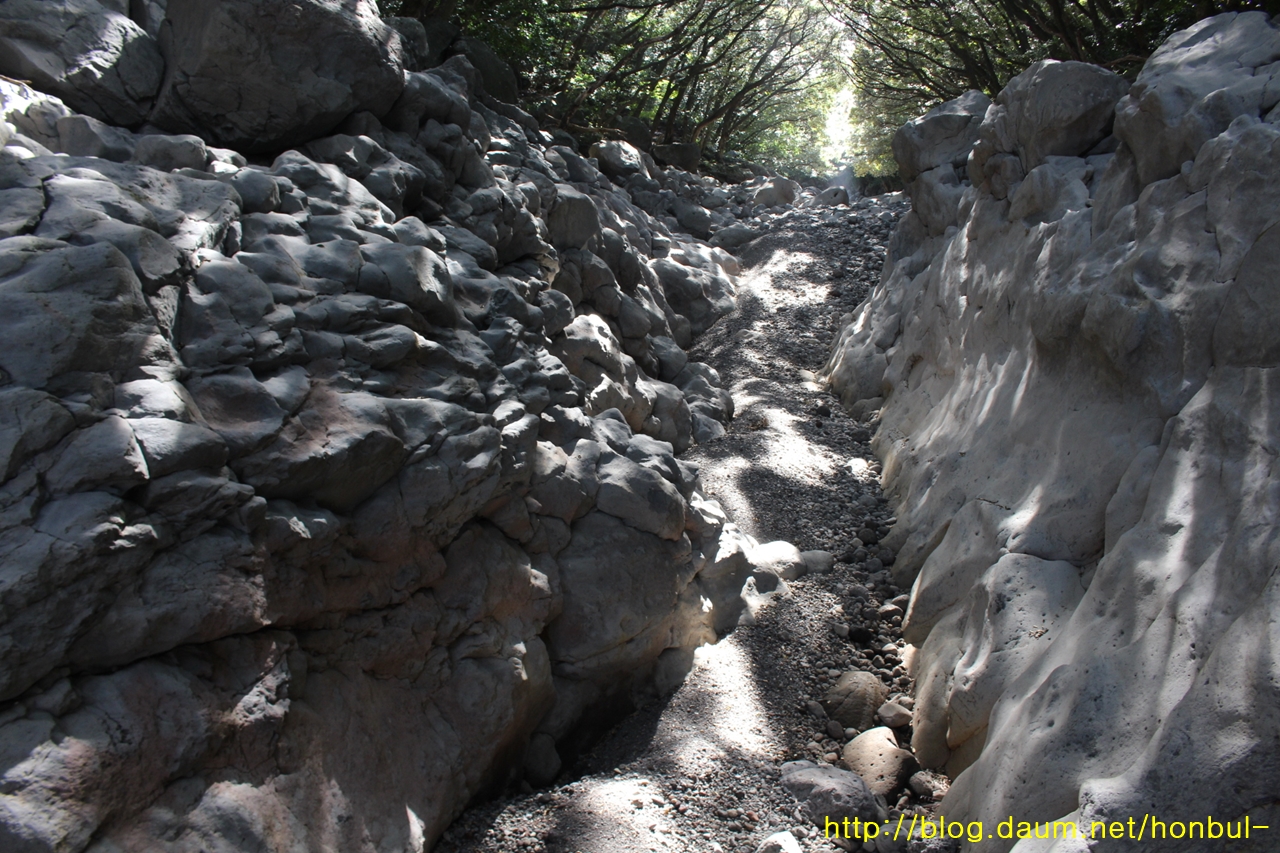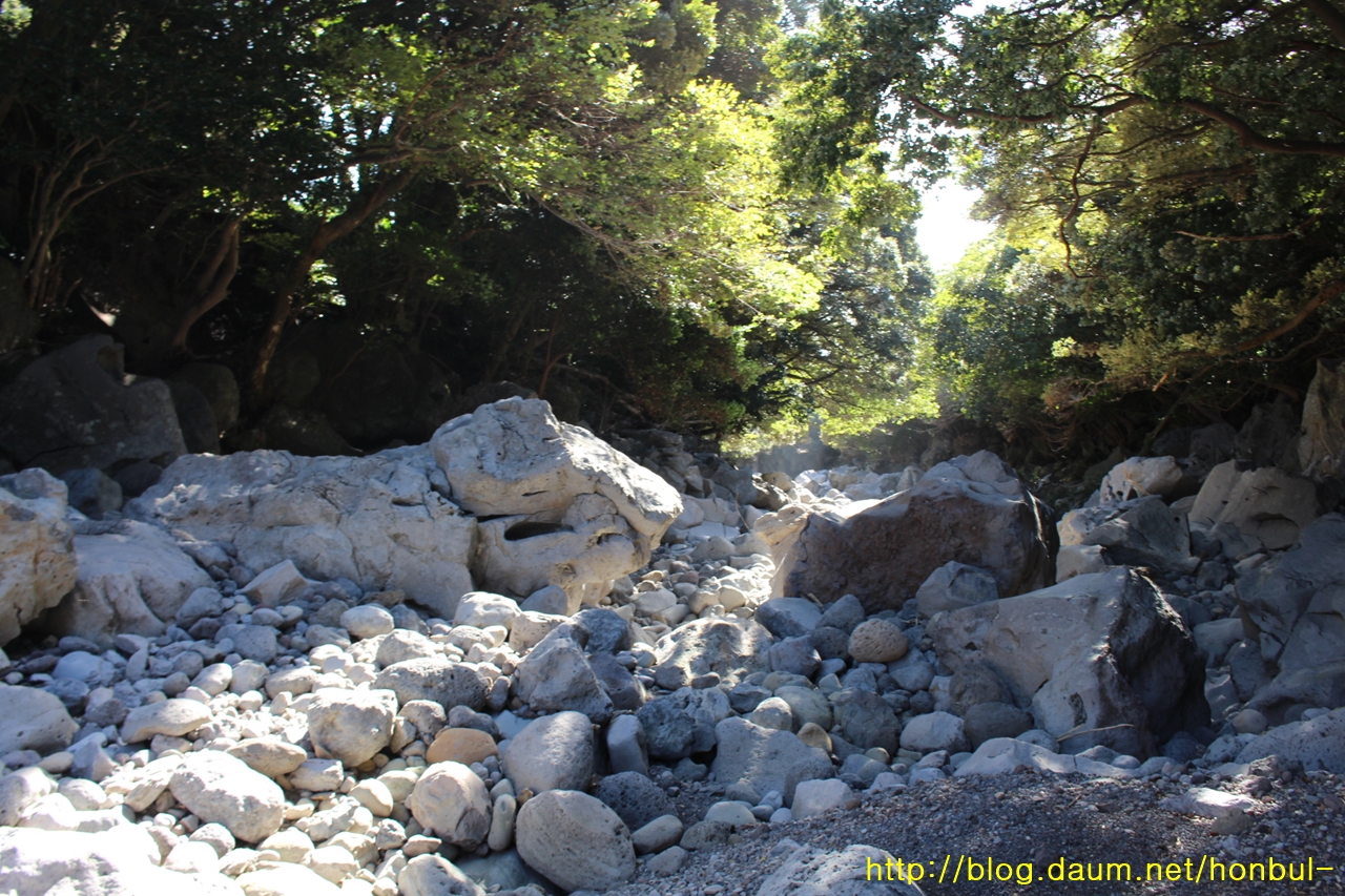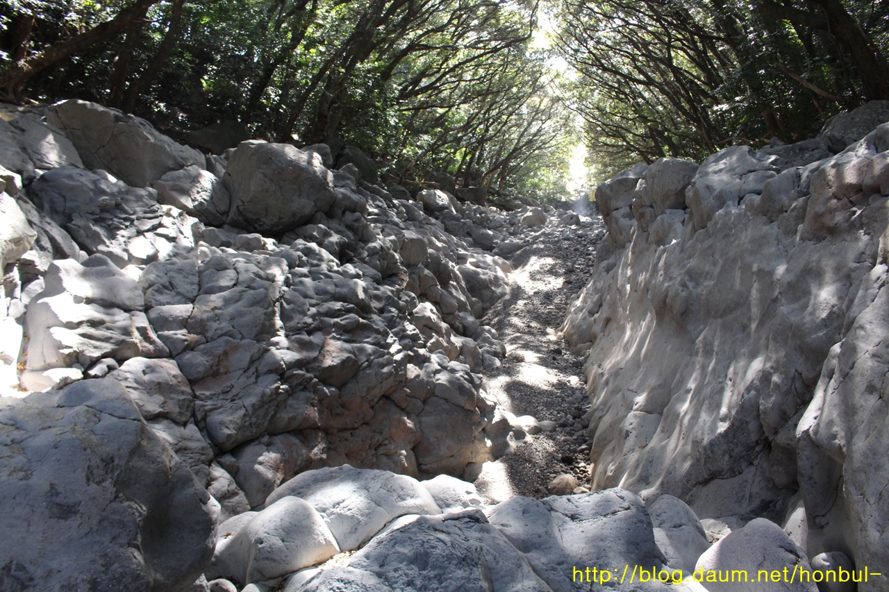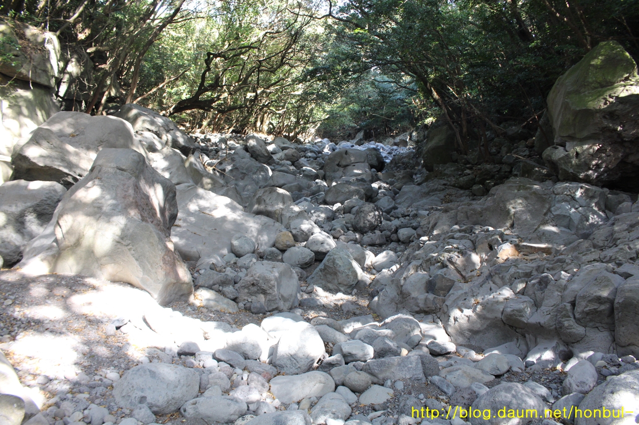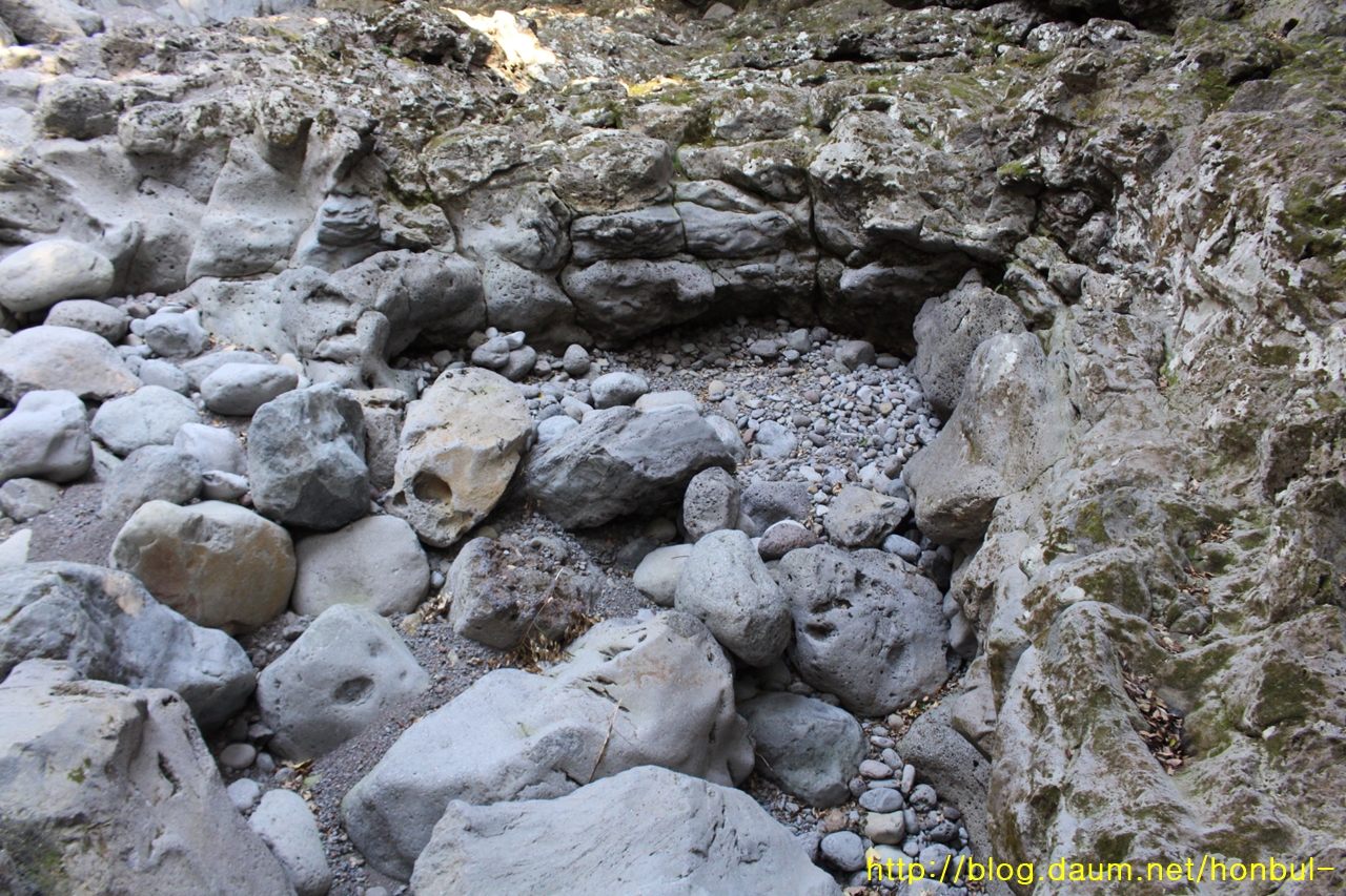 순식간에 계곡은 건천으로 변하고 바닥은 암반 계곡이다.
