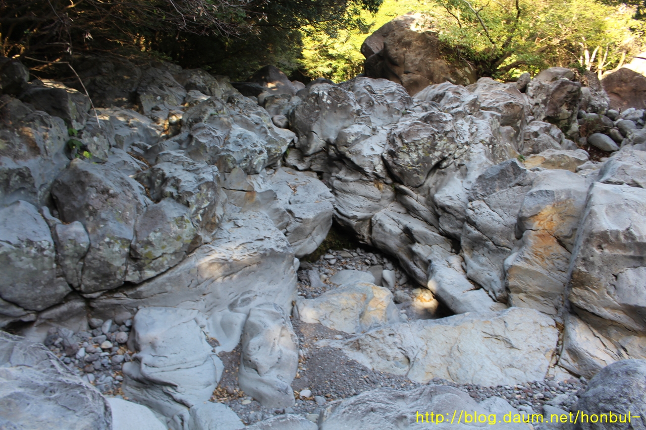 이 계곡을 탈출하겠다고 밀려든 바위들