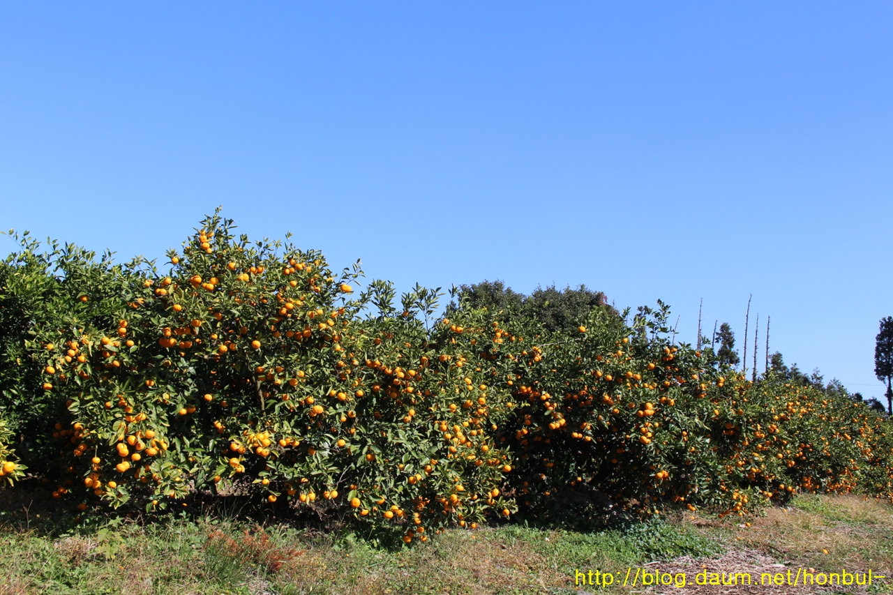 이런 귤 농장을 지나며 만나는 잘 익은 귤에 탐심이 생긴다.