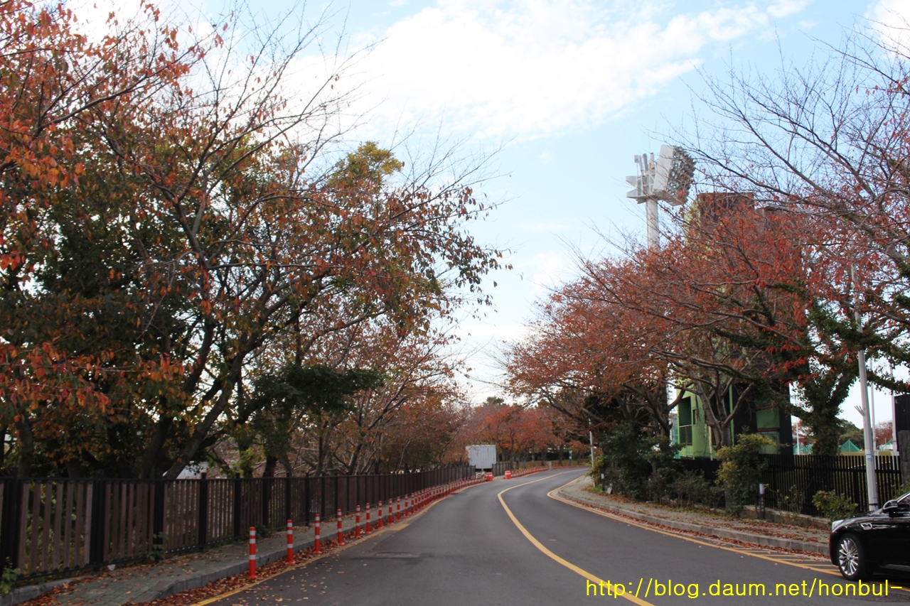 제주종합경기장 옆 작은 도로변의 단풍나무