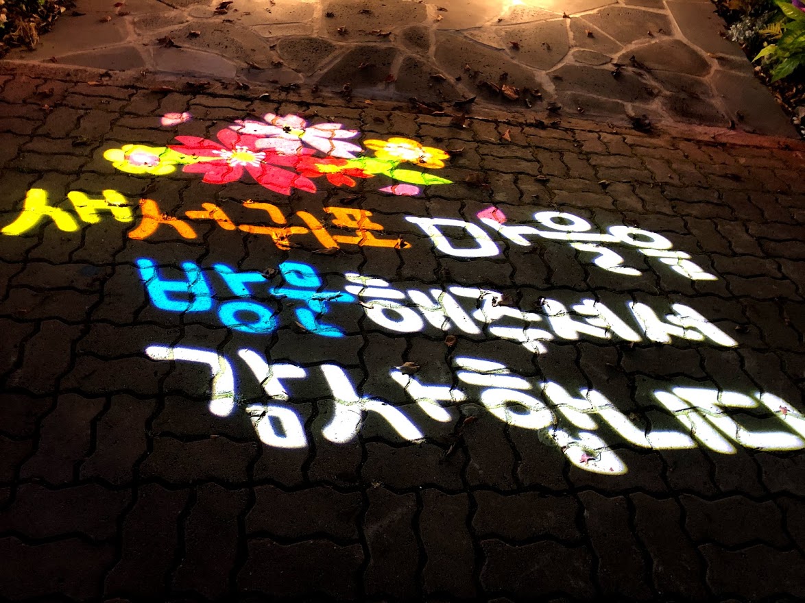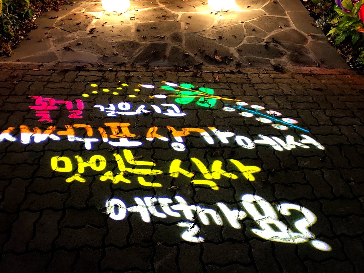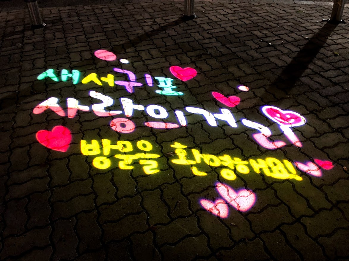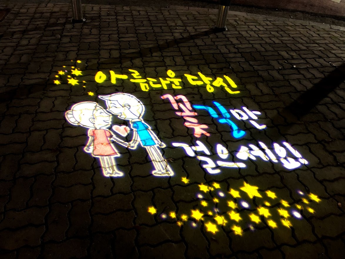 저녁 먹고 숙소로 들어가는 데, 길거리 로고젝터가 눈길을 끈다.