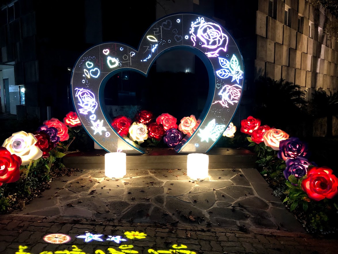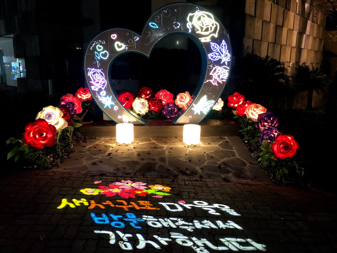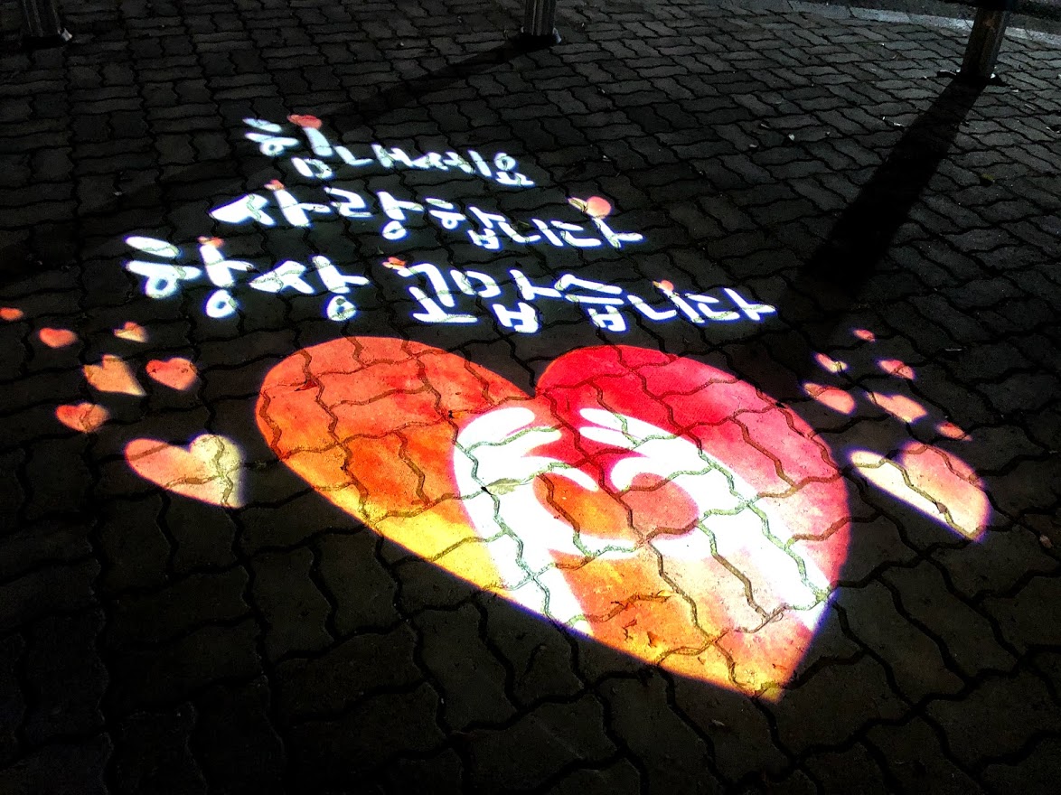 어느 장년 부부기 이 하트 앞에서 사진을 찍길래 하트와 문구가 다 나오게 찍어보라고 권했다.