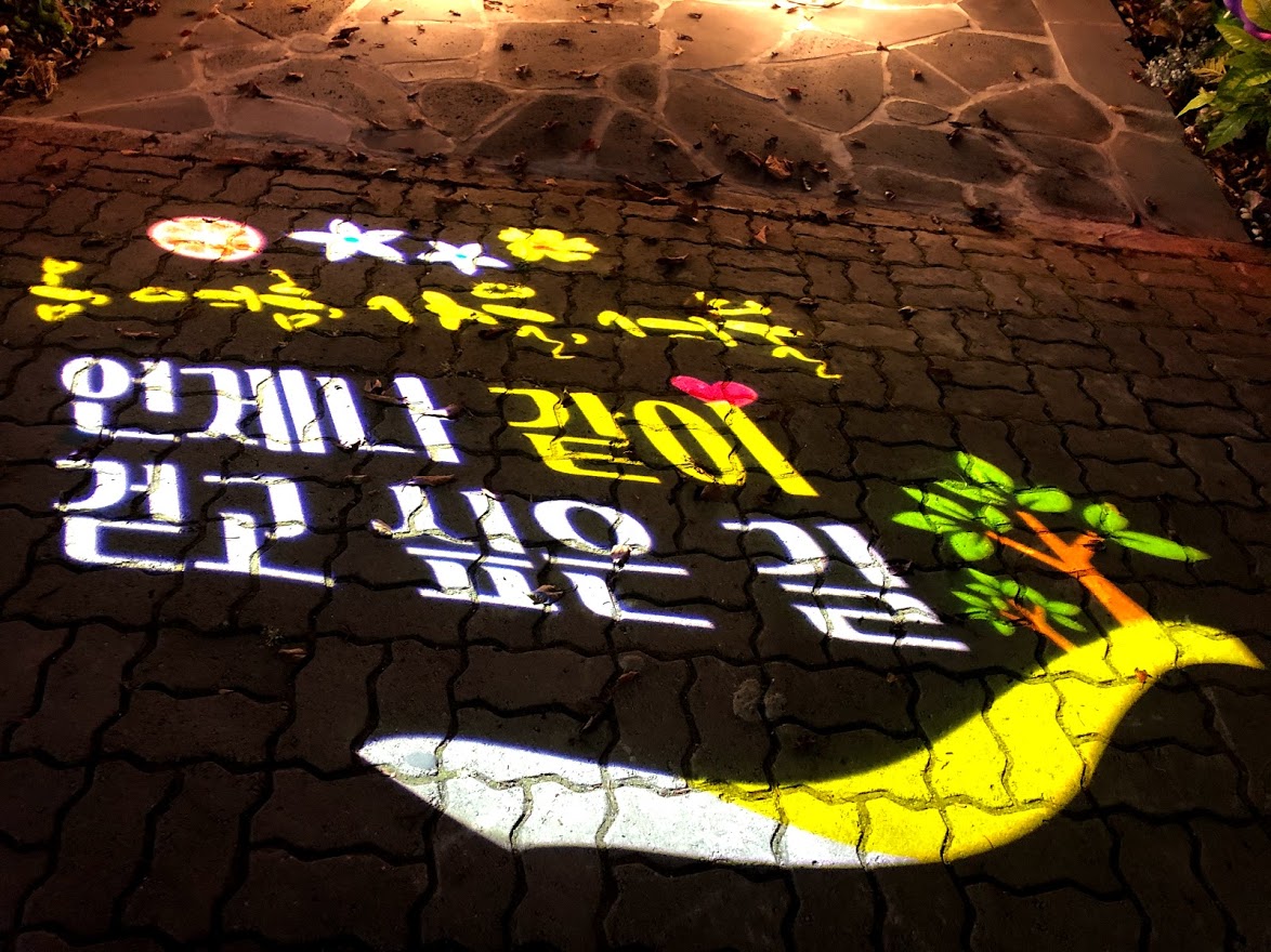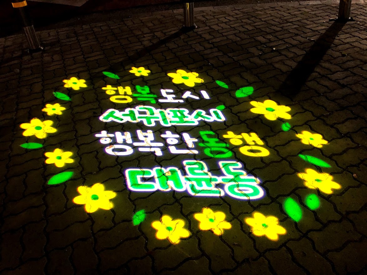 로고젝터는 어느 도시나 대부분 설치되어 있겠지만, 이렇게 여러 문구가 돌아가는 건 처음이다.