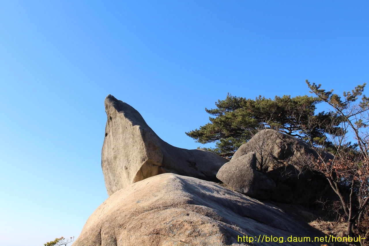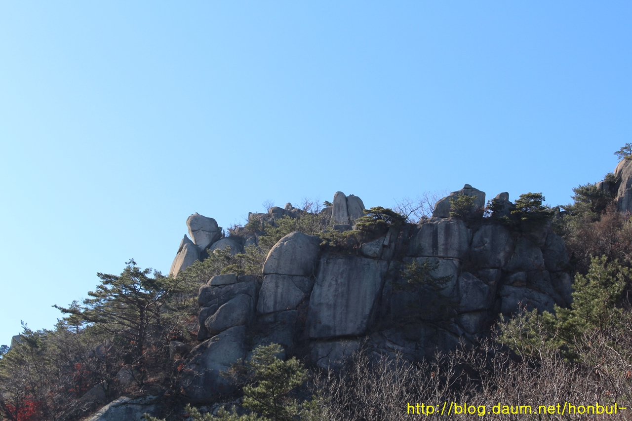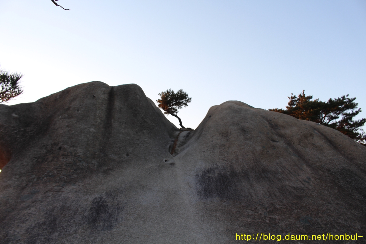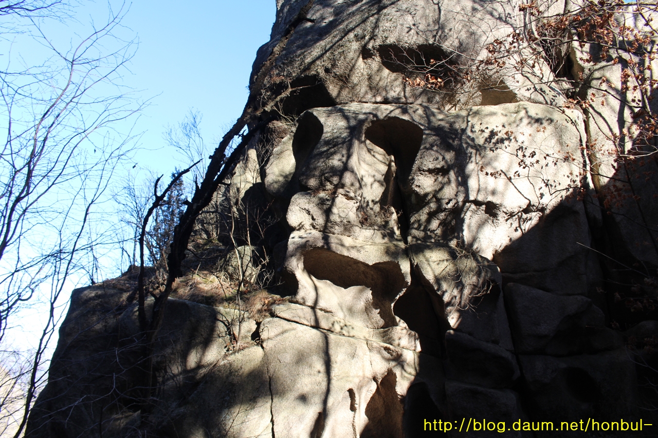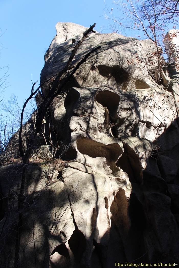 늘 마음은 있으나 건너뛰던 곳인데, 최근 이곳의 해골바위가 근사하게 보여 내려가며 만난 첫 번째 바위다.