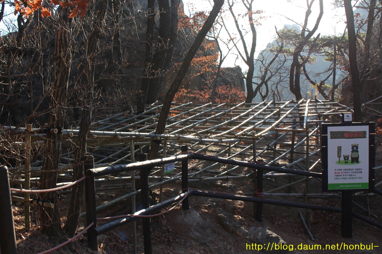 요즘은 산에서도 제법 큰 공간이 있으면 사람이 모이지 않게 막은 곳이 많다.