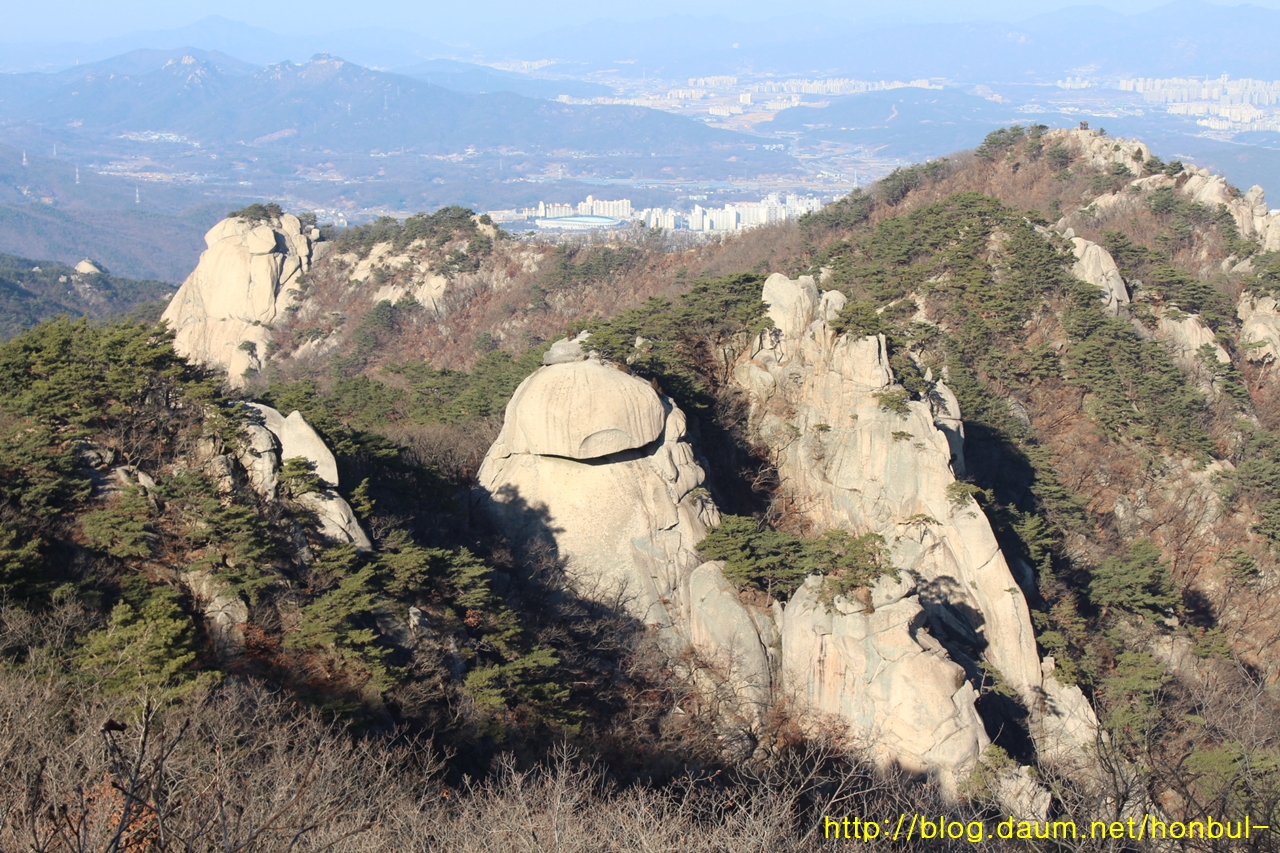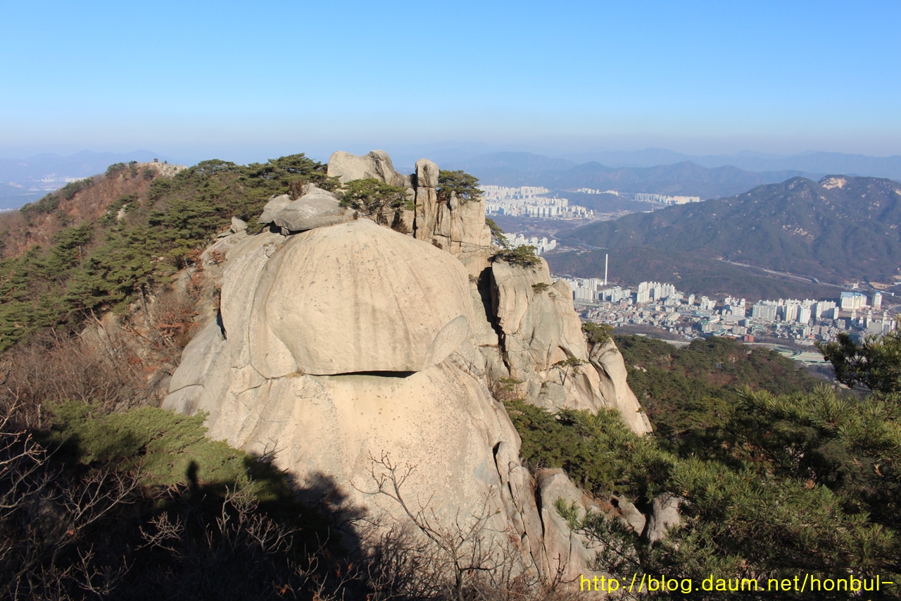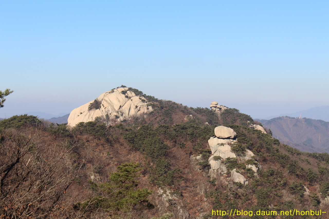사패산 정상 암릉과 갓바위를 보고, 이번엔 600봉을 조망한다.