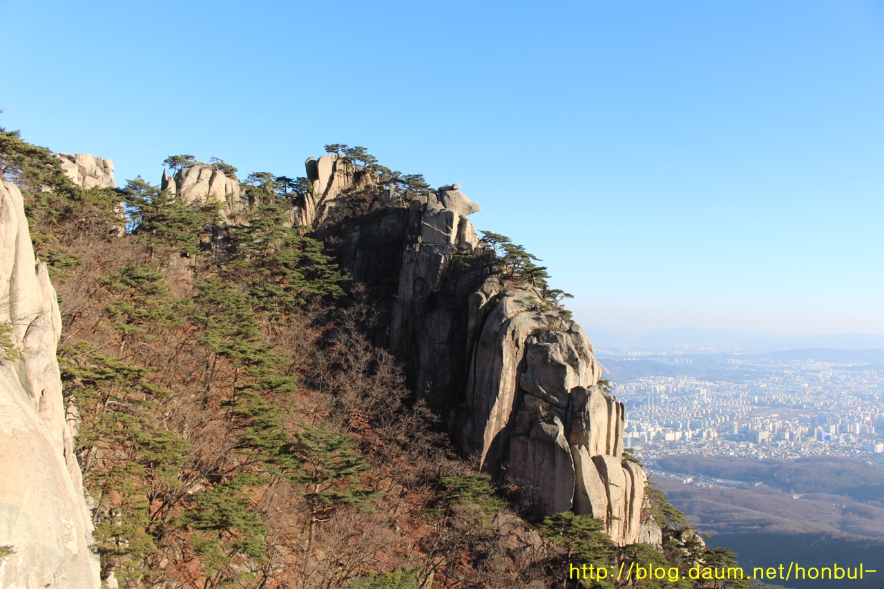 해골 바위는 북한산 숨은벽능선이 최고의 작품이다.