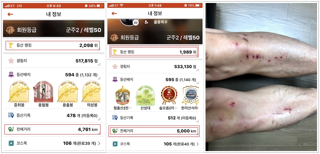 11월 18일 월출산 산행을 끝냈을 땐 5,000km이다.