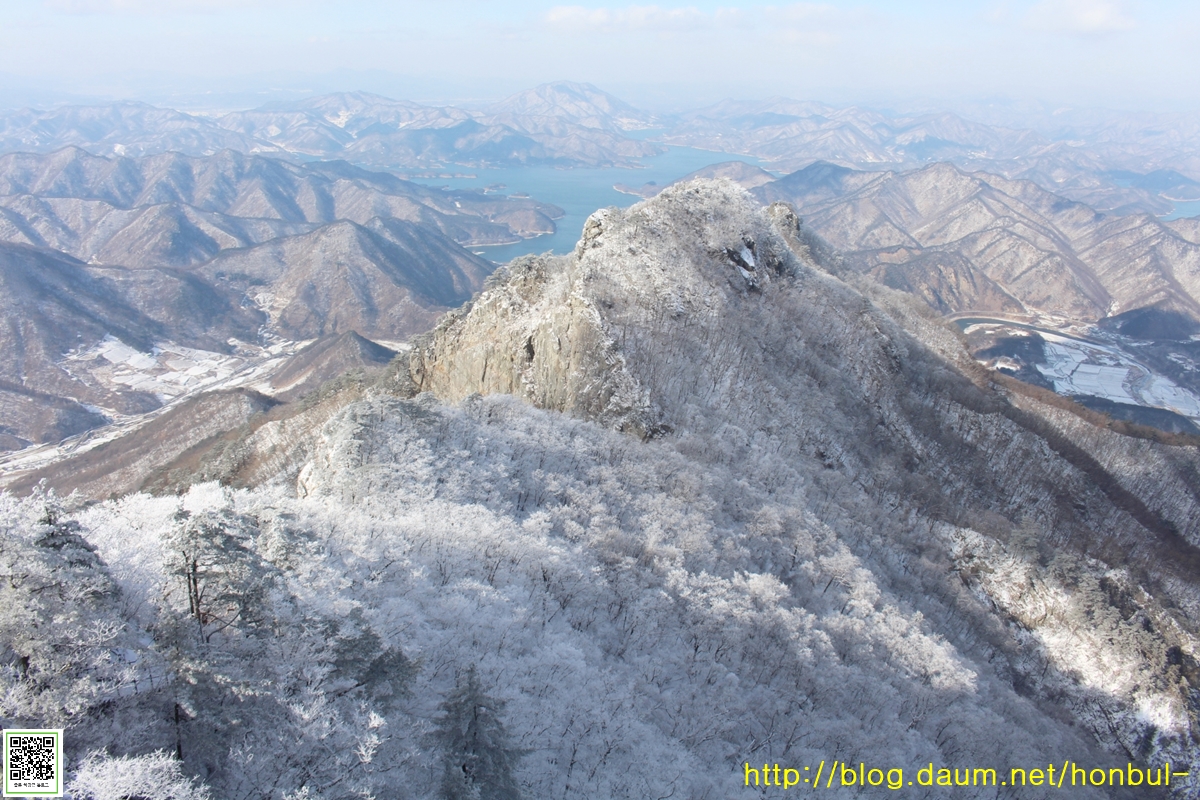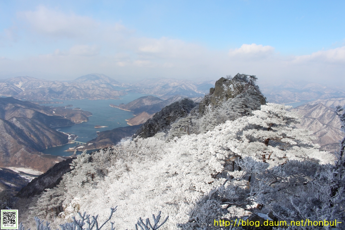 좀 더 가까운 월악산은 충주호를 끼고 있어 물안개가 피어오를 테니 상고대가 생길 천혜의 조건이다.