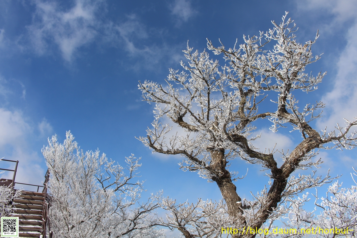 눈꽃도 아름답기는 하나 나무에 걸친 것이라 서리꽃처럼 나무르 온전히 감싼 맛은 없다.