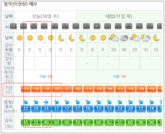 상고대를 볼 수 있는 천혜의 조건이긴 하나 월악산 날씨 조회 결과 참혹할 정도로 춥다.