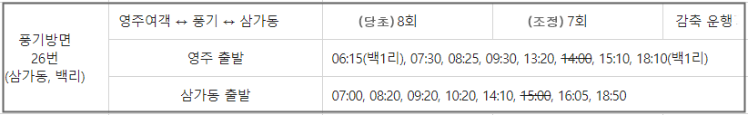 참고로 영주발 삼가리 버스 시간표를 올린다.