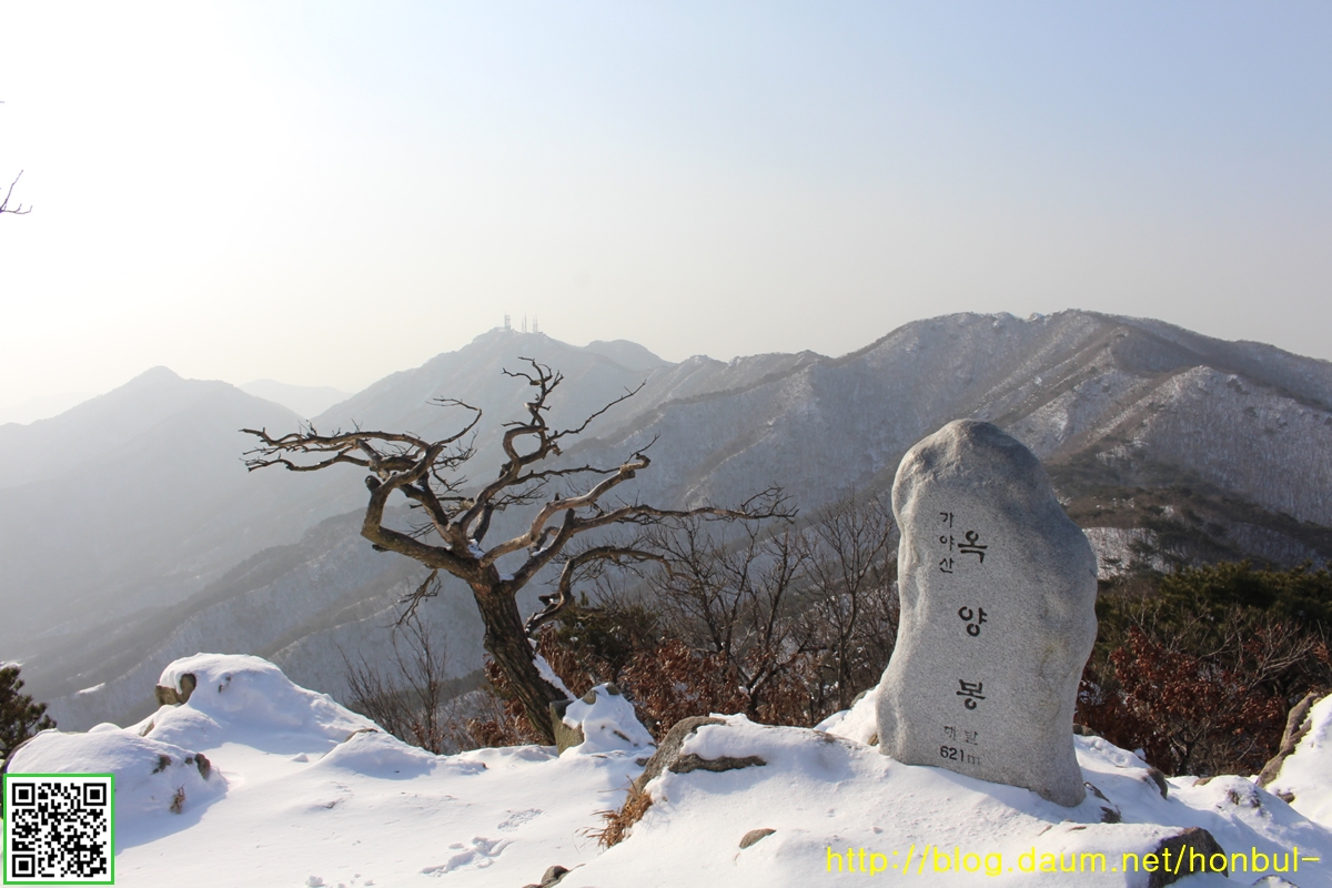 멀리 가야산 정상인 가야봉에 통신탑이 보인다.