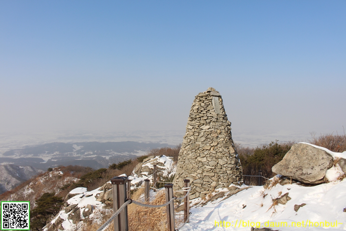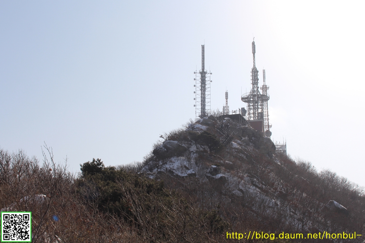 군 통신탑이 있어 정상 대신 울타리에 정상석에 세워져 있다.