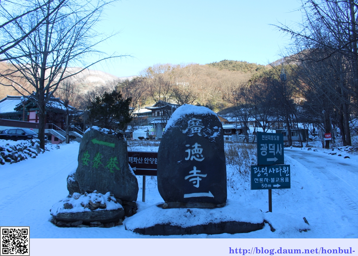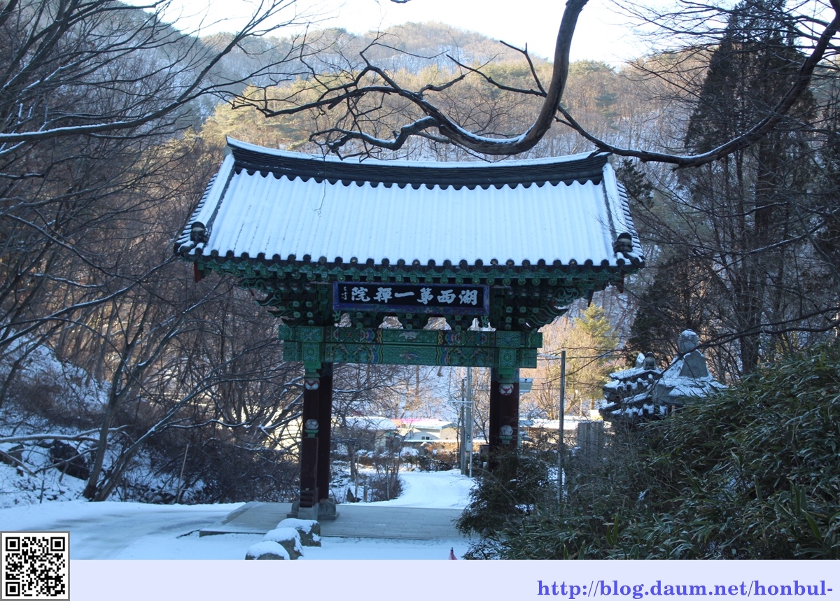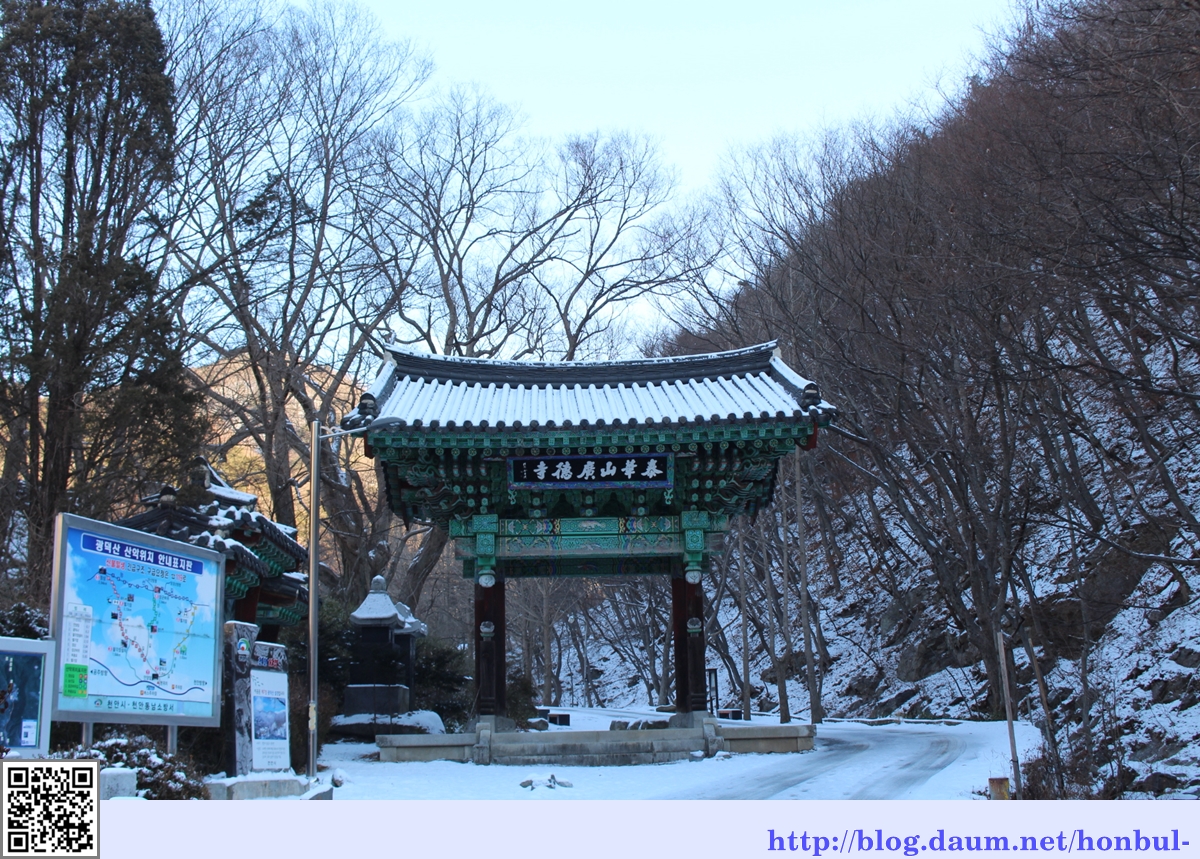 어젯밤 갑작스레 함박눈이 내린 후 광덕산 입구엔 제설작업이 제대로 안 돼 버스가 설설 긴다.