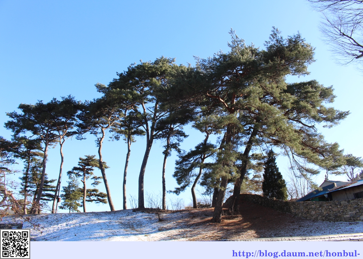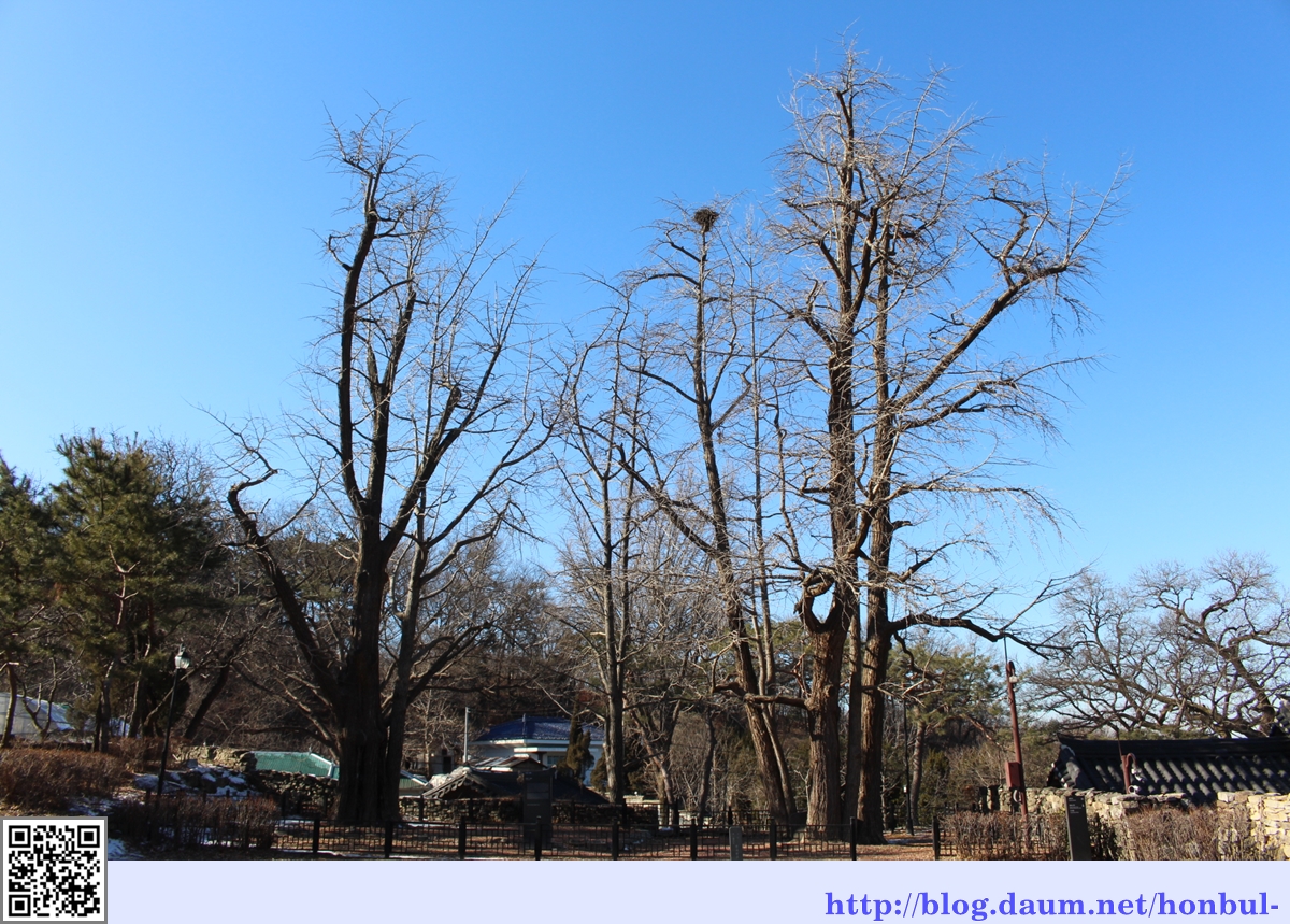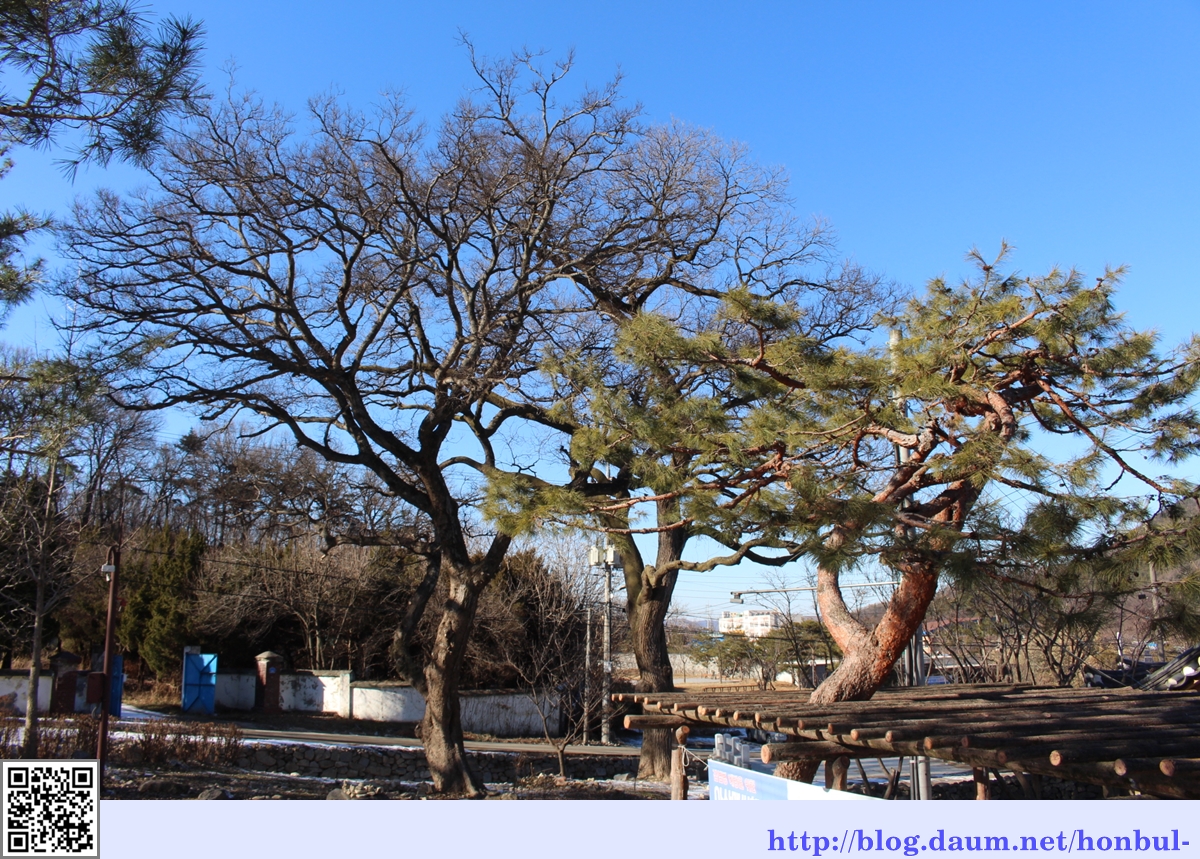 고택 뒤편 언덕에는 맹사성이 황희, 허형과 함께 각각 세 그루 느티나무를 심은 것에서