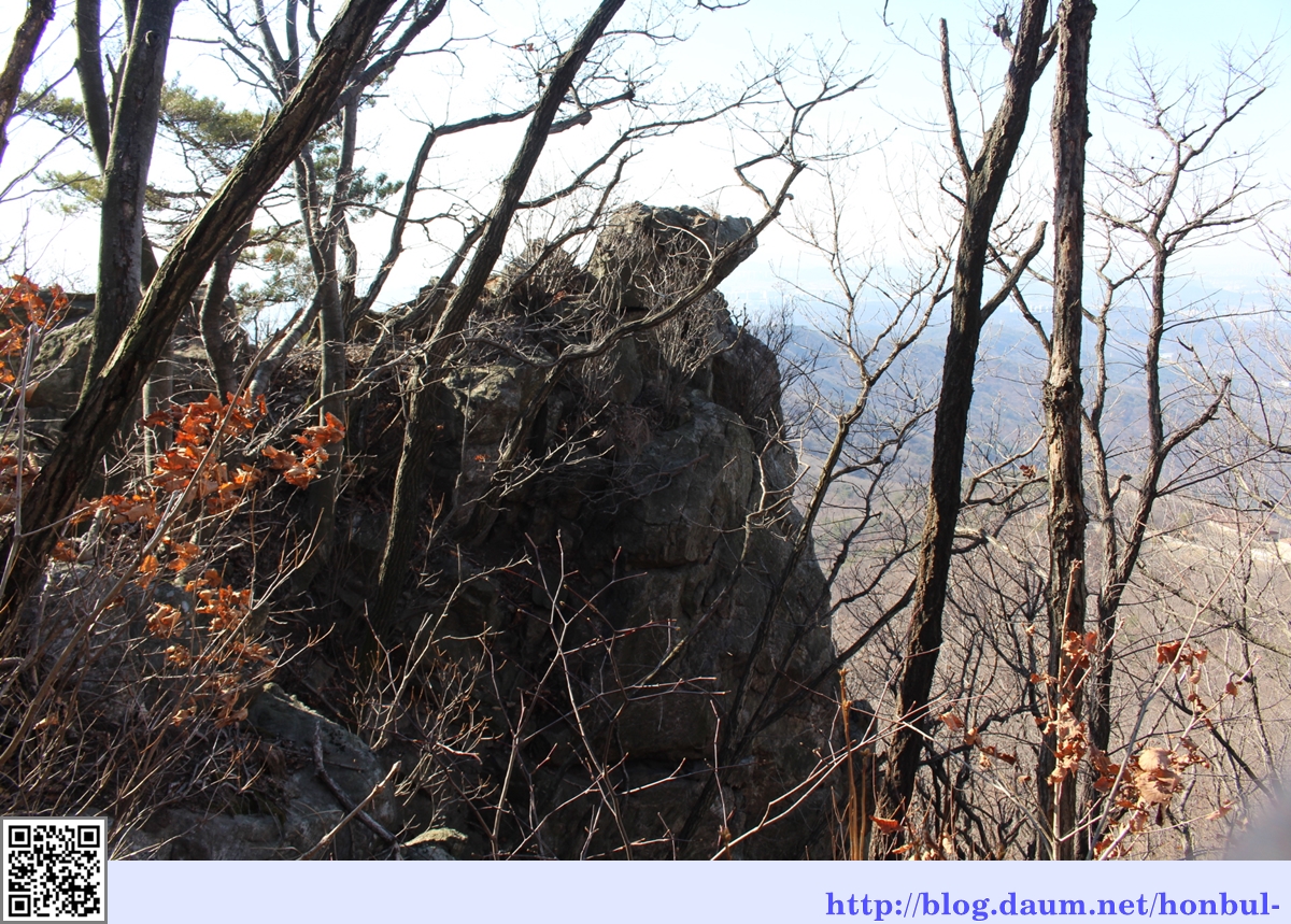 광교산 정상에서 약 250m 동쪽으로 수리봉을 다녀가는 길에 만난 암봉