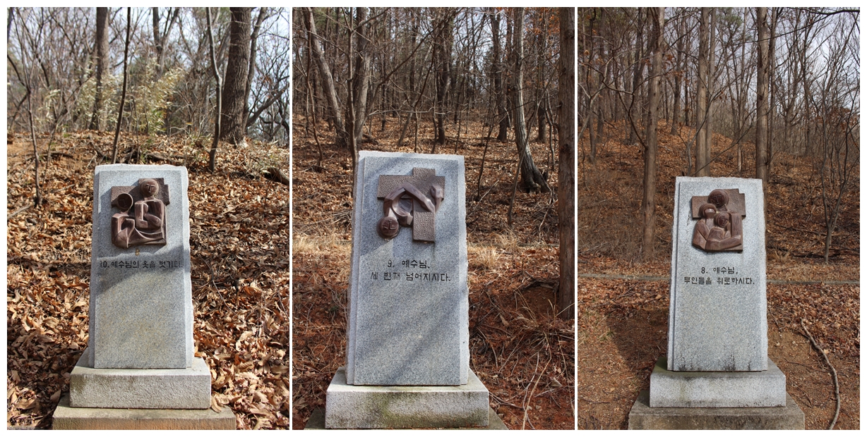 성요셉의집과 연결된 작은 주차장에 차를 대고 산을 오르는 길에 만난 조각품 세 점을 담는다.