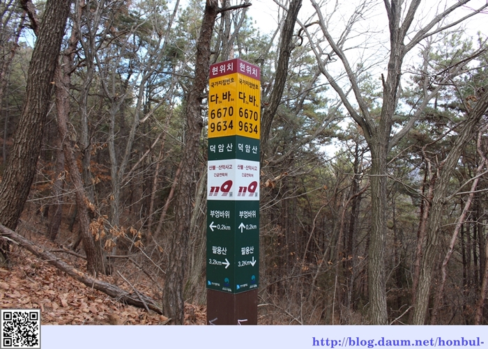 여기서 좌로 가면 덕암산 가는 길인데, 200m 직진하면 부엉 바위가 있단다.