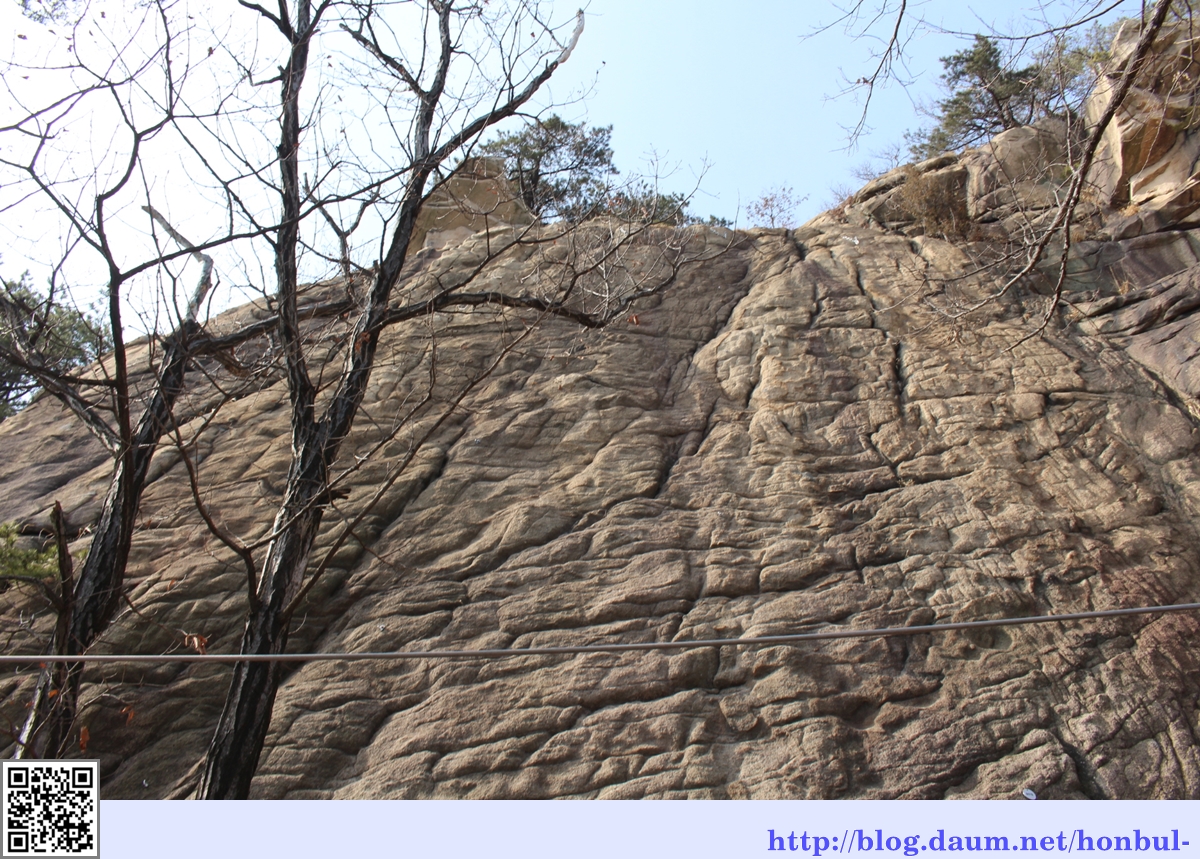 궁금했던 바위 절벽은 이런 바위가 담장처럼 길게 연결되었다.