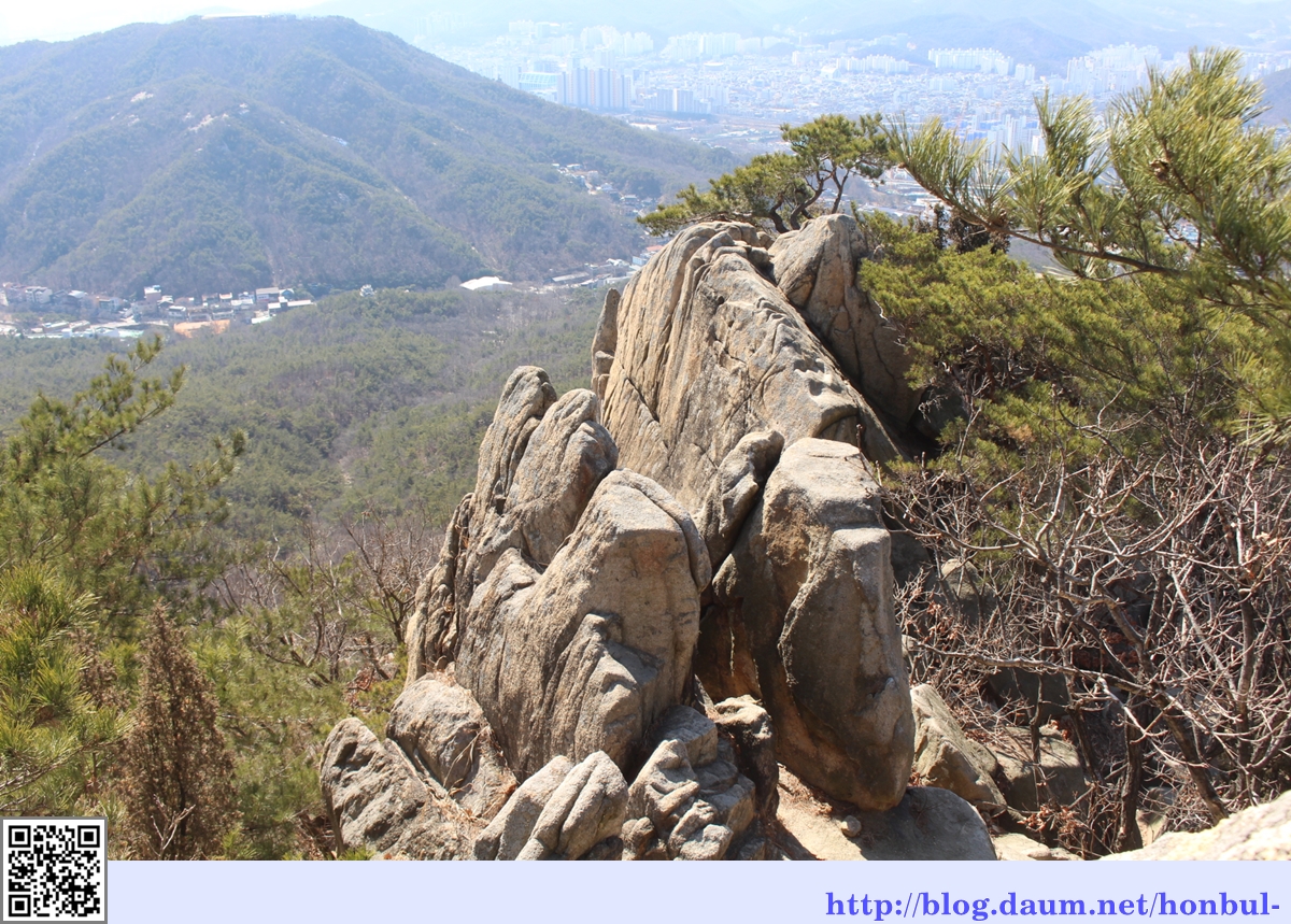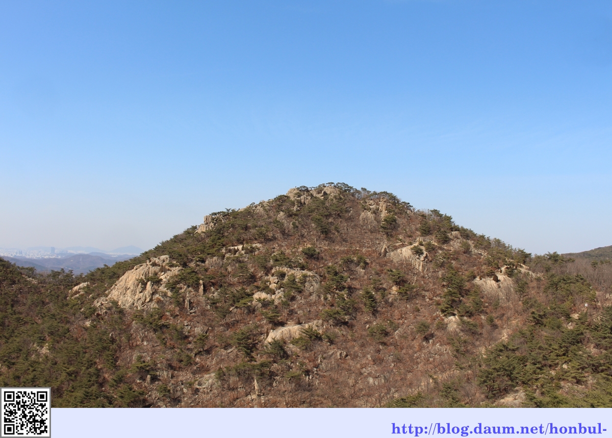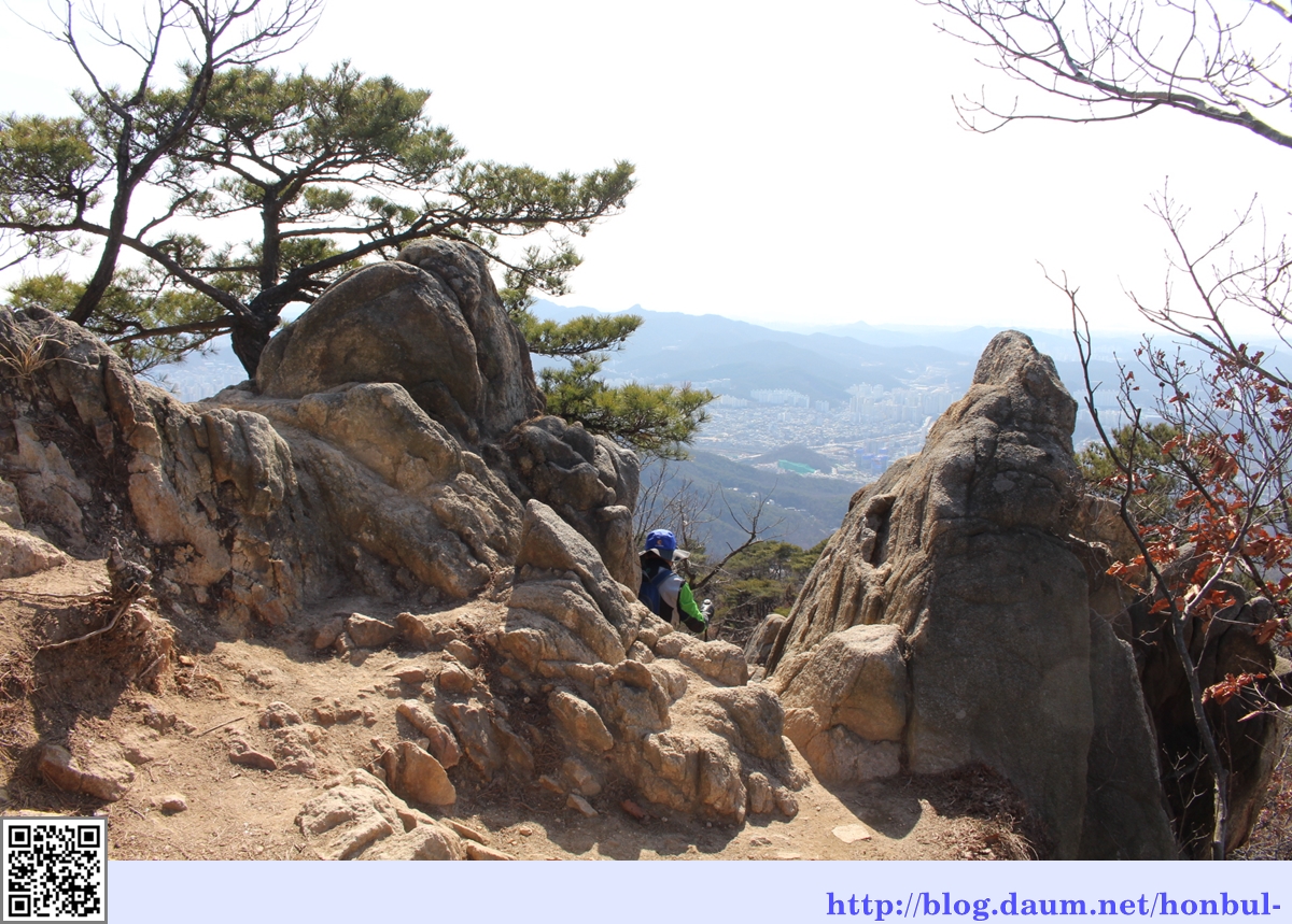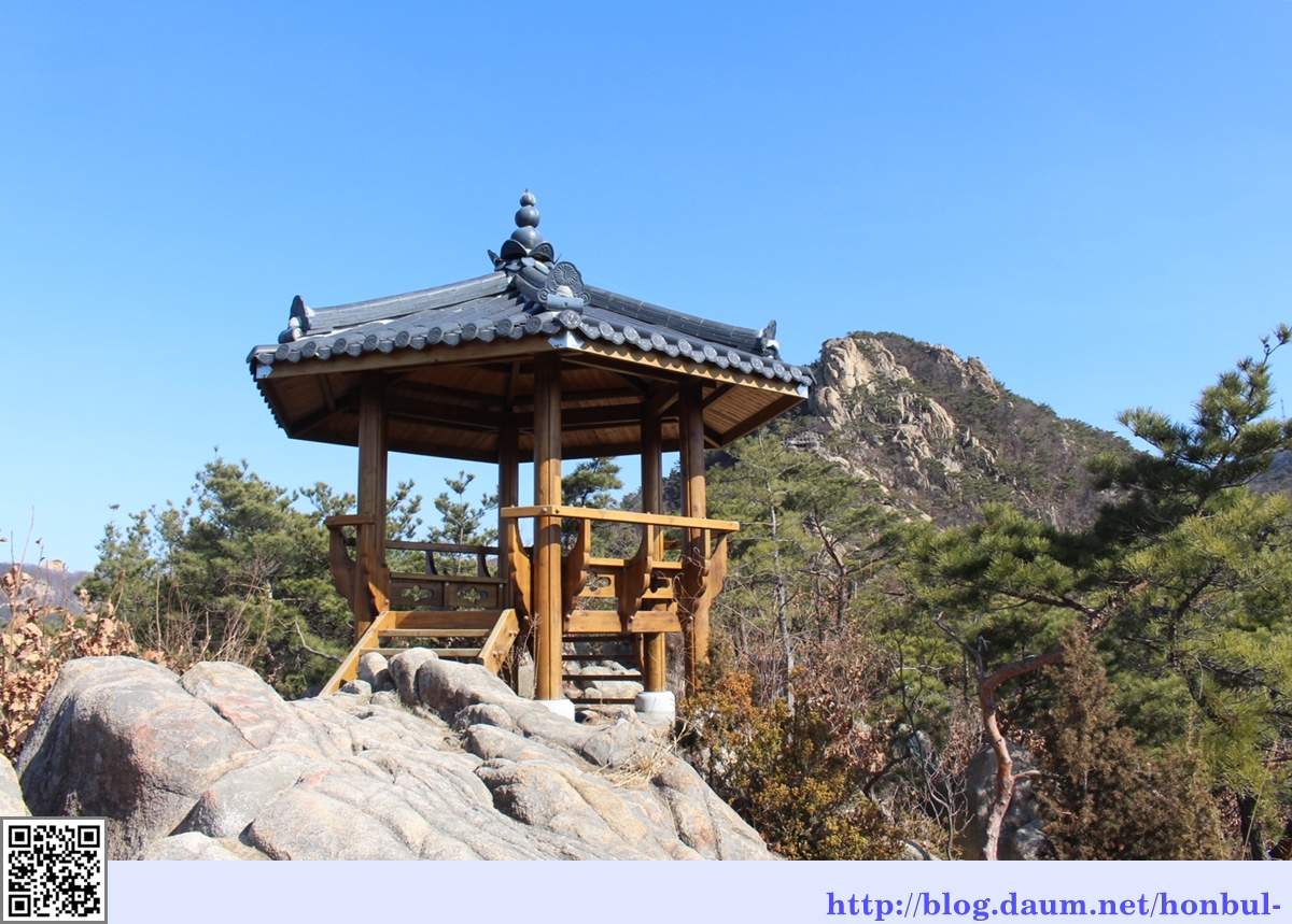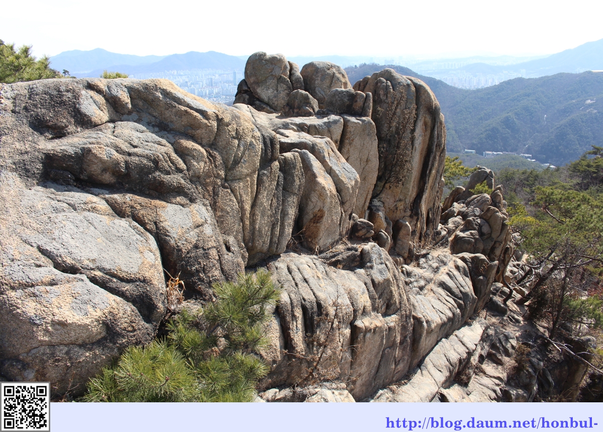 제1전망대인 정자 옆으로 삼성산의 커다란 바위가 보인다.