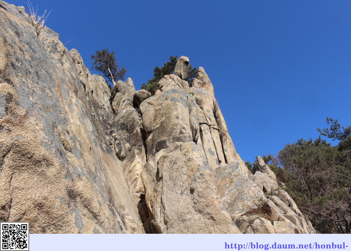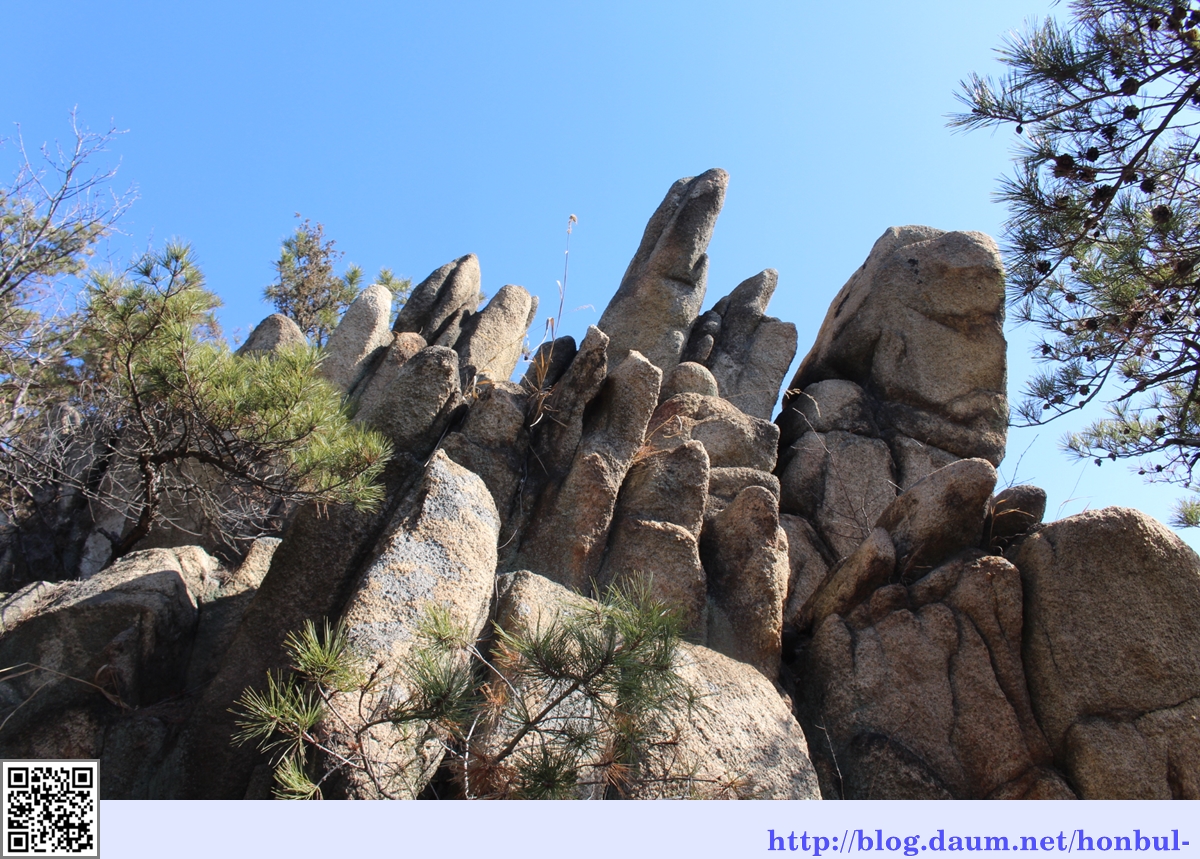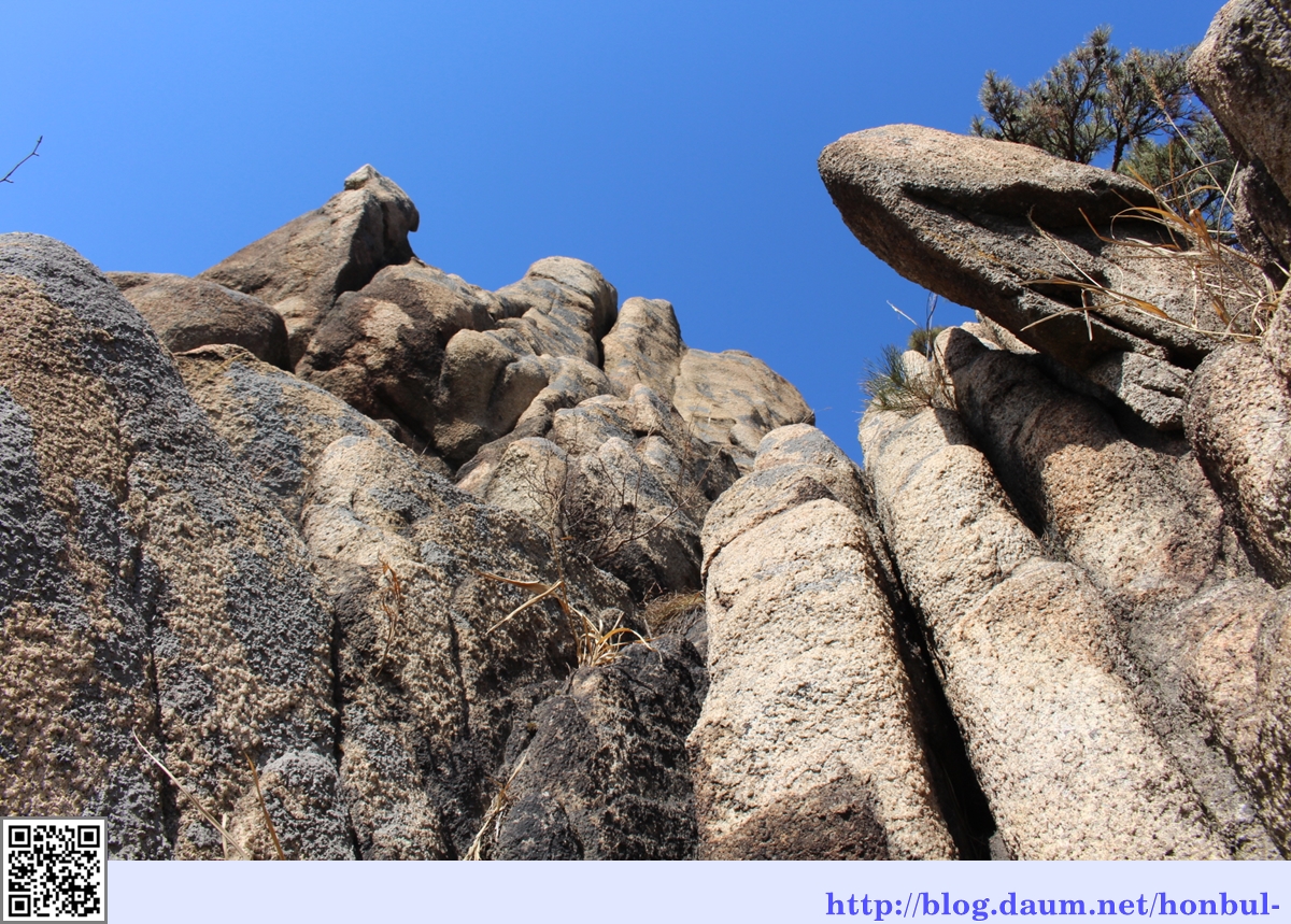 하늘 높은 줄 모르고 손을 뻗어 여기까지 올라온 바위들, 잘 섰다.