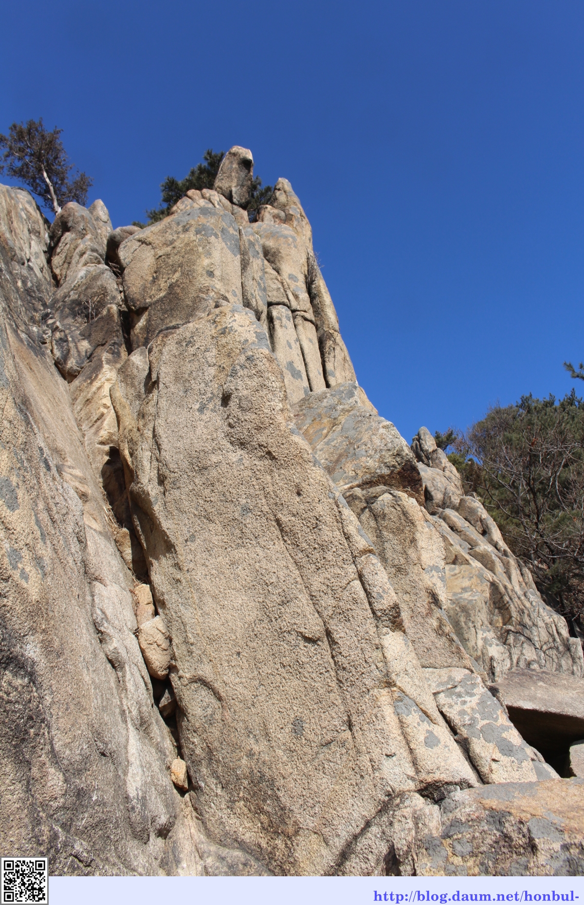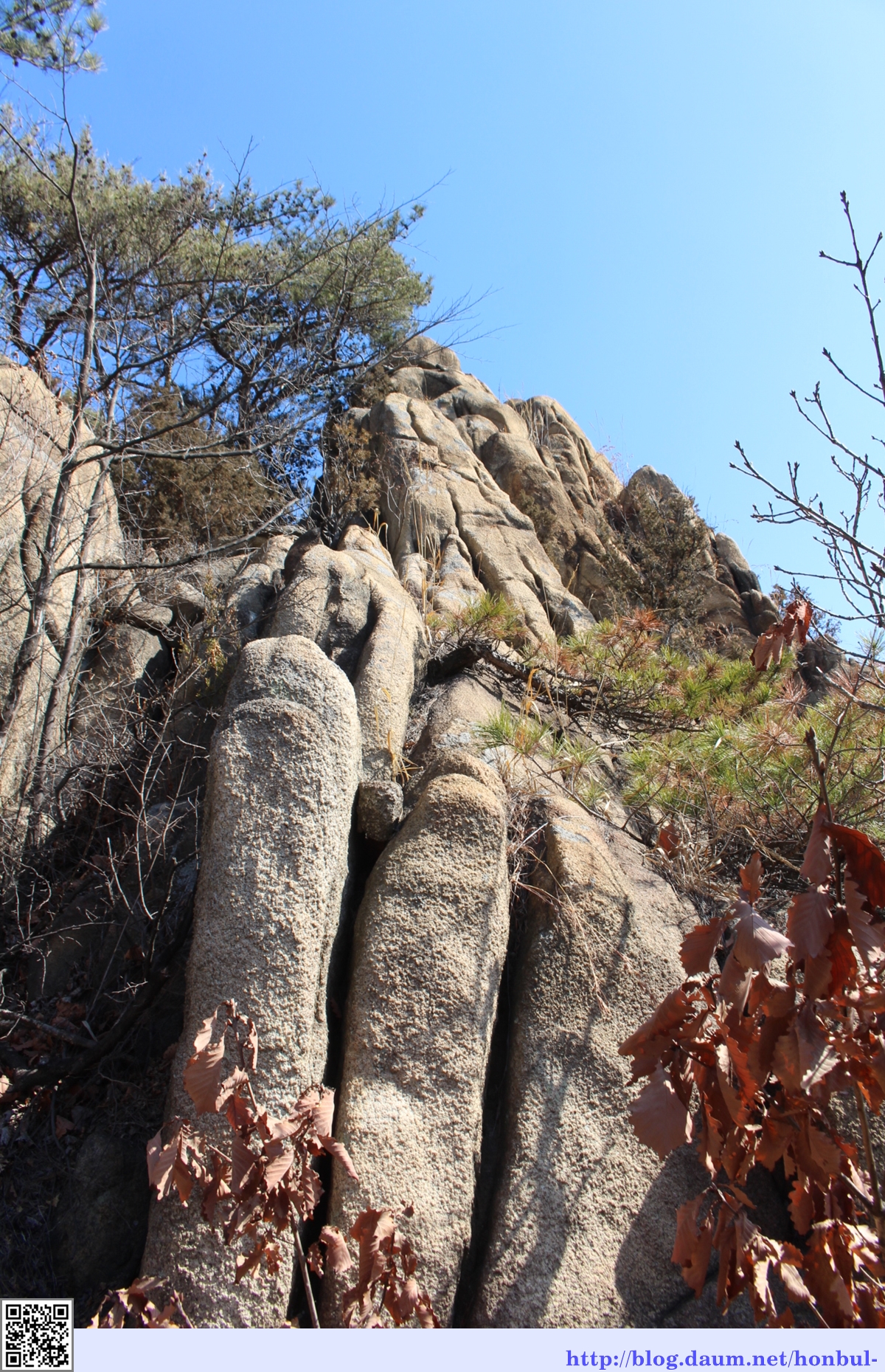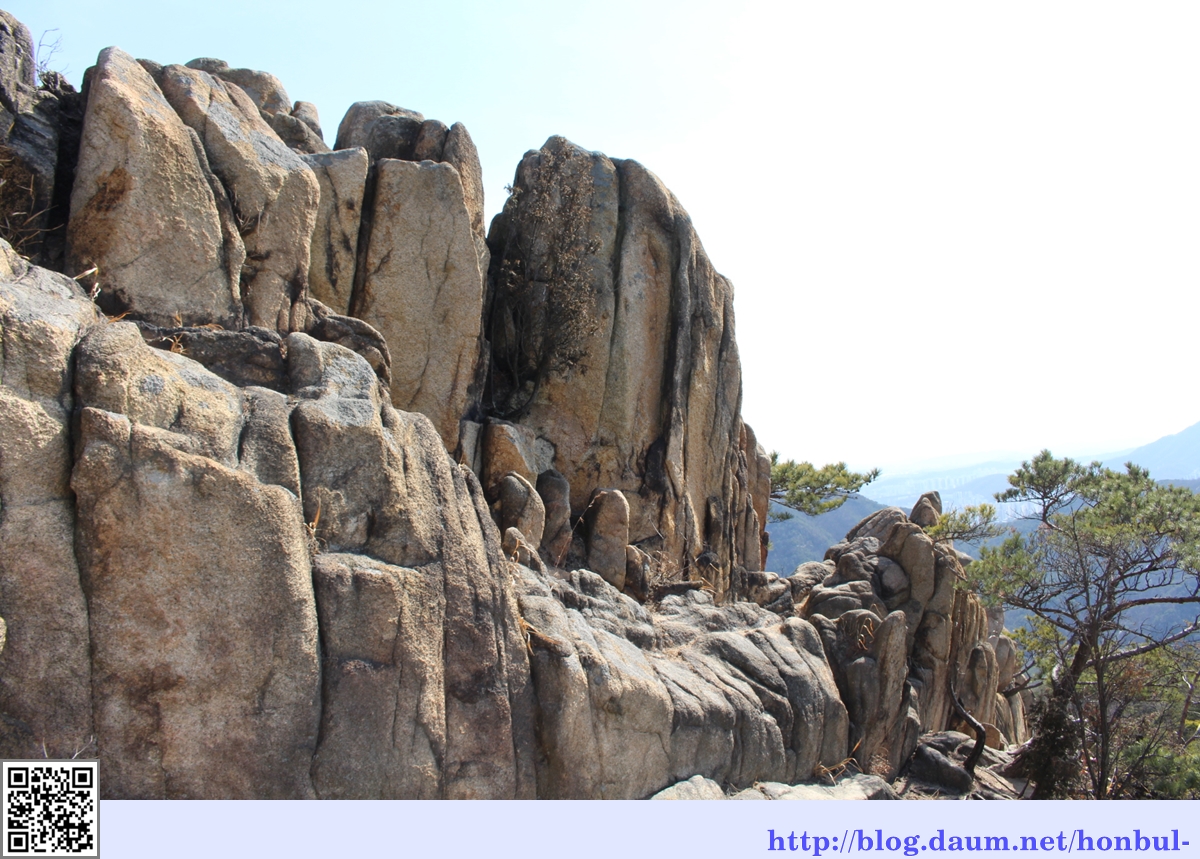 하늘 높은 줄 모르고 손을 뻗어 여기까지 올라온 바위들, 잘 섰다.