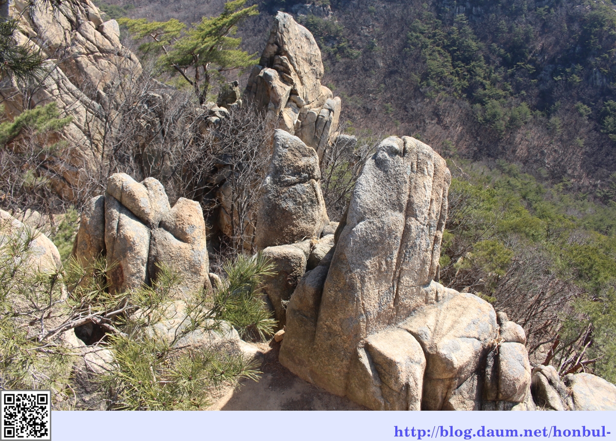내려가는 구간에도 여러 바위가 보기 좋게 널려 있으나 너무 가까워 사진으로 잡는 걸 포기한 경우도 많다.