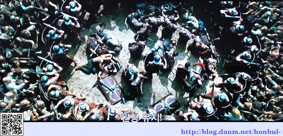1열은 방패로 가슴을 가리고 2열부터는 머리에 방패를 둘러 빈틈없이 적의 창칼을 방어하며 전투하는 귀갑진을 펼친다.