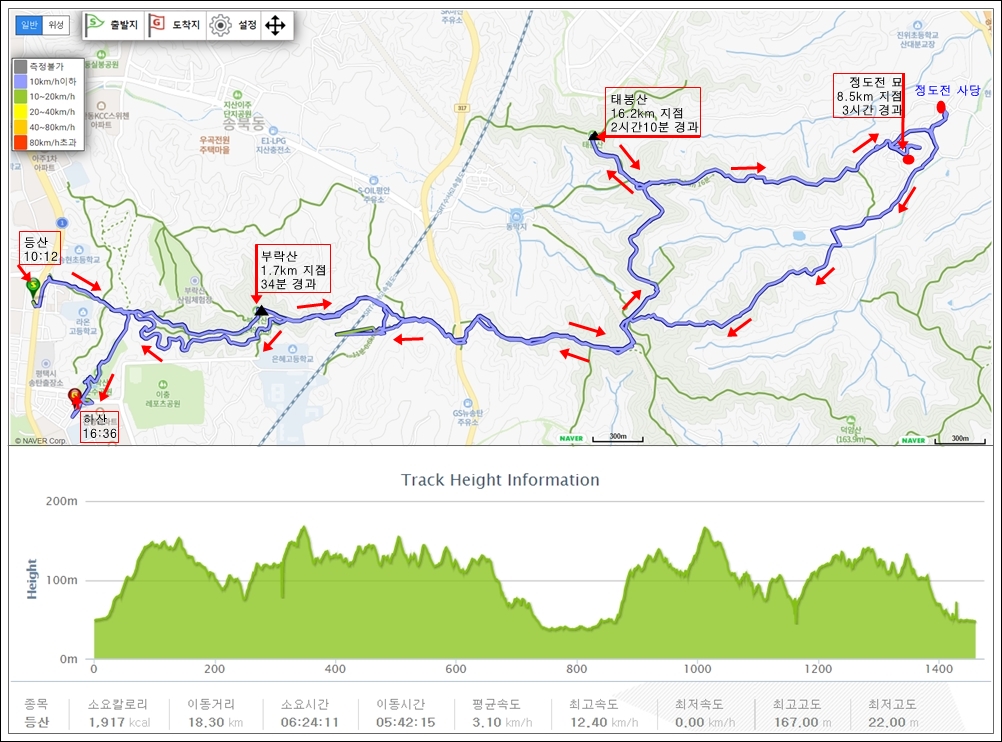 2021.3.5. (금) 10:12~16:36(6시간 24분 산행, 42분 휴식, 이동 거리 18.3km, 평속 3.1km/h)